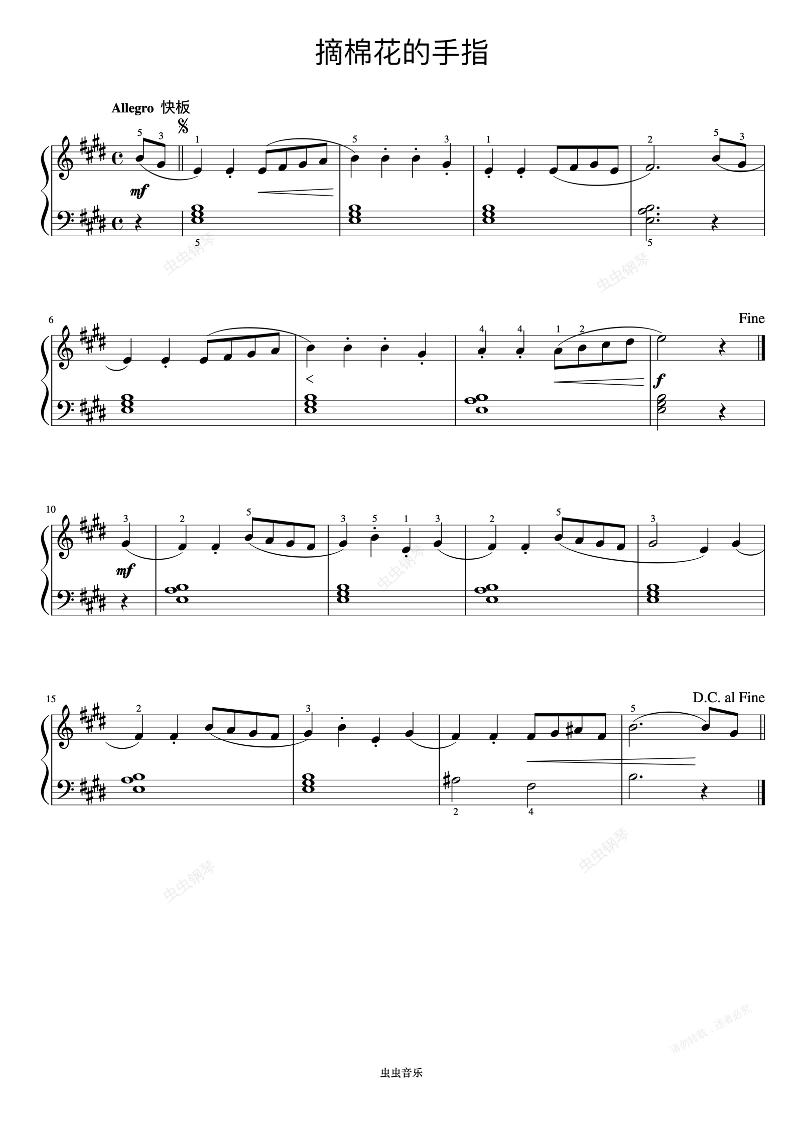钢琴谱:摘棉花的手指《约翰汤普森 简易钢琴教程 4》