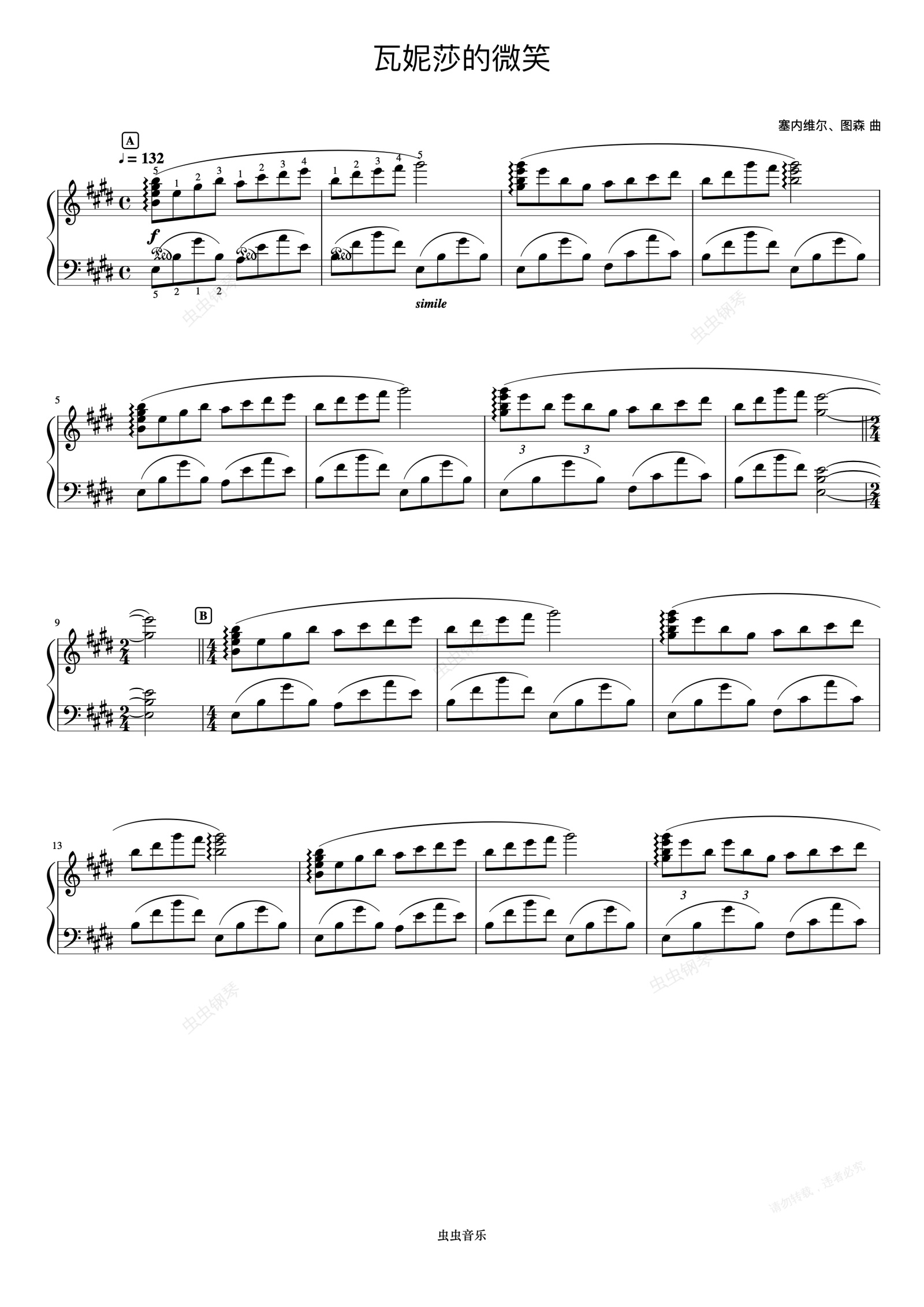 钢琴谱:33瓦妮莎的微笑《浪漫永恒——理查德克莱德曼全新钢琴曲精选集》
