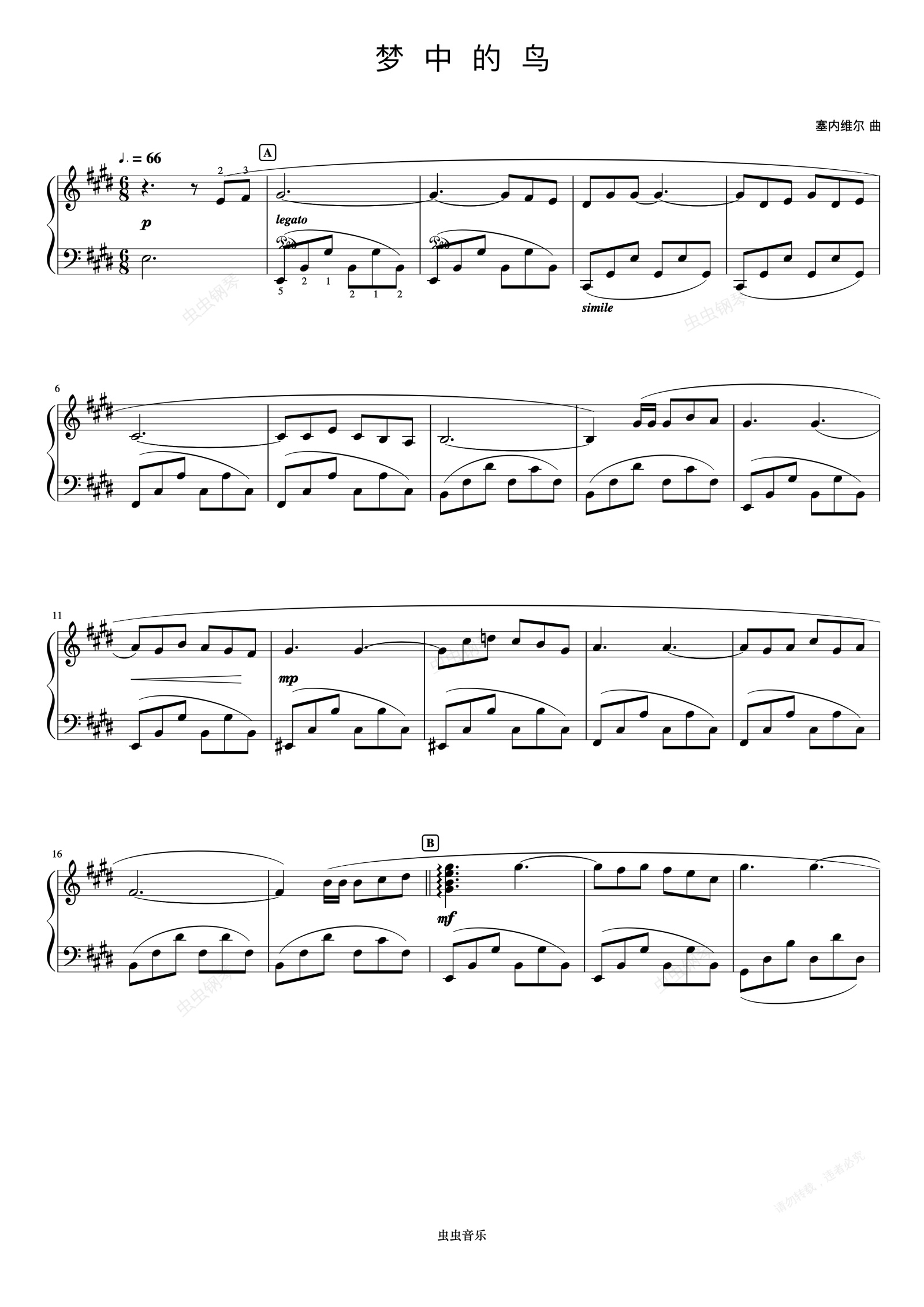 钢琴谱:48梦中的鸟《浪漫永恒——理查德克莱德曼全新钢琴曲精选集》