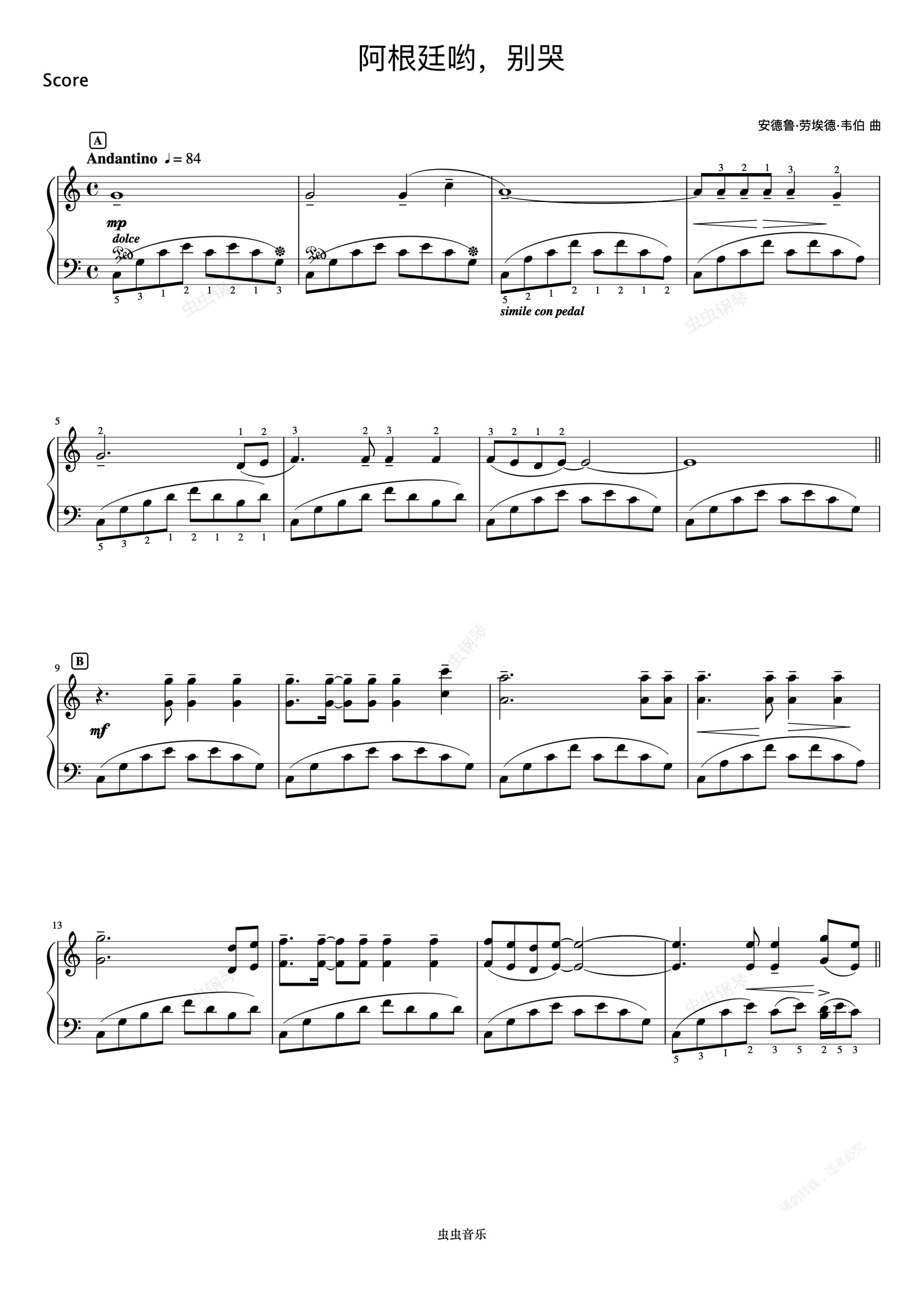 钢琴谱:38阿根廷哟,别哭《浪漫永恒——理查德克莱德曼全新钢琴曲精选集》