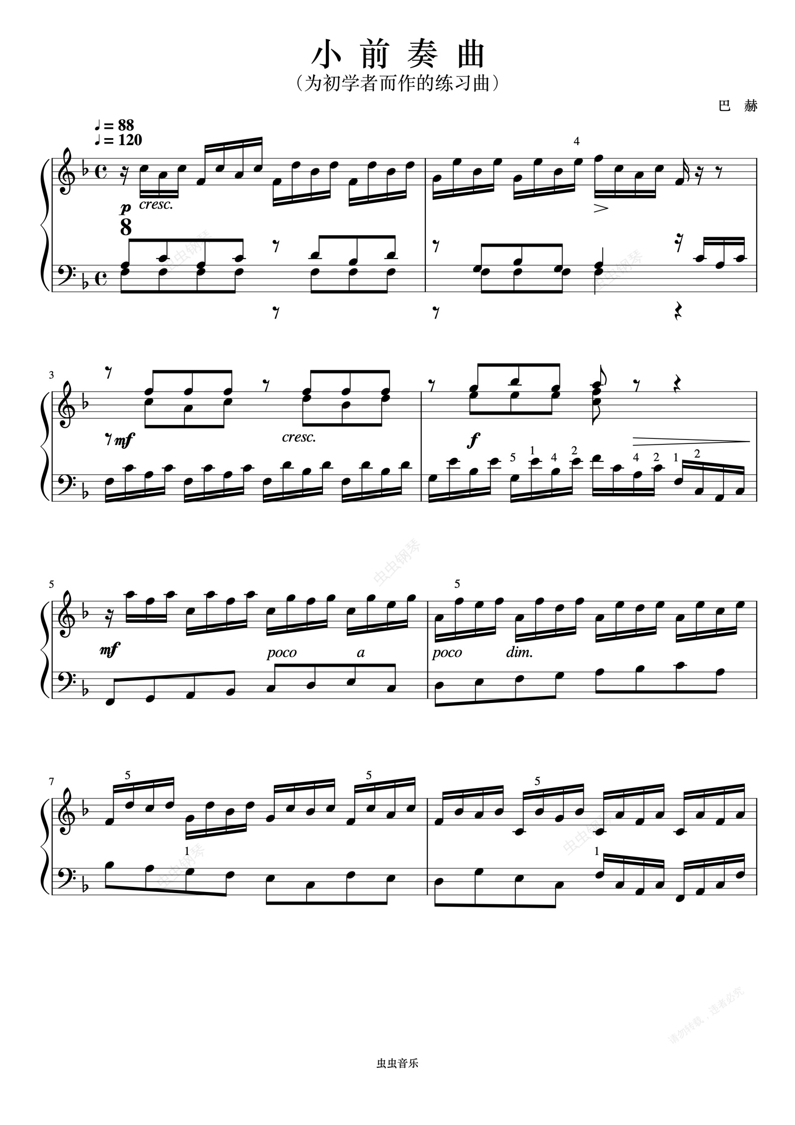 钢琴谱:小前奏曲NO.8《巴赫 小前奏曲与赋格曲》