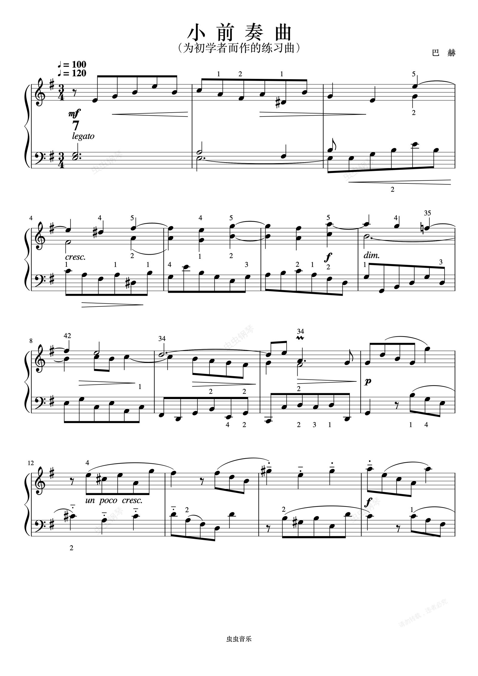 钢琴谱:小前奏曲NO.7《巴赫 小前奏曲与赋格曲》