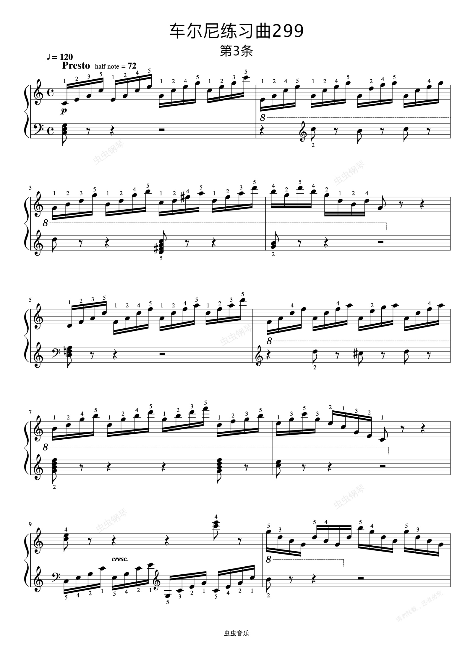 钢琴谱:第3首《车尔尼快速练习曲 作品299》