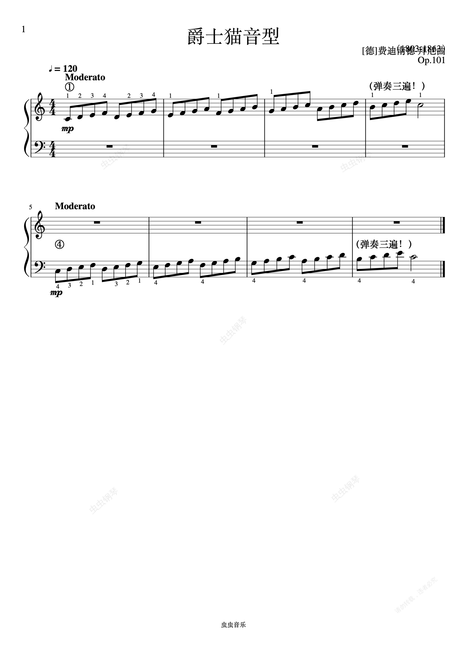 钢琴谱:单元四 爵士猫音型《FBE 技巧和演奏》