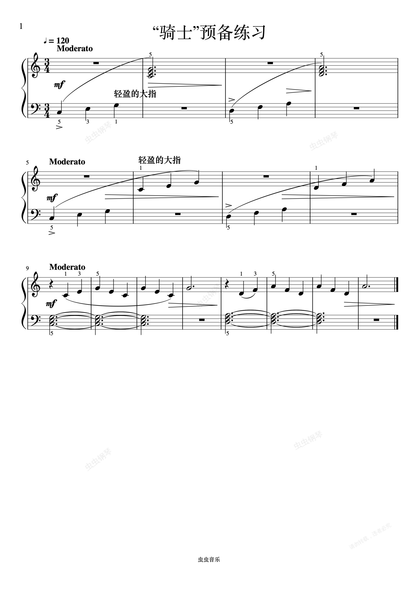 钢琴谱:单元二 “骑士”预备练习《FBE 技巧和演奏》