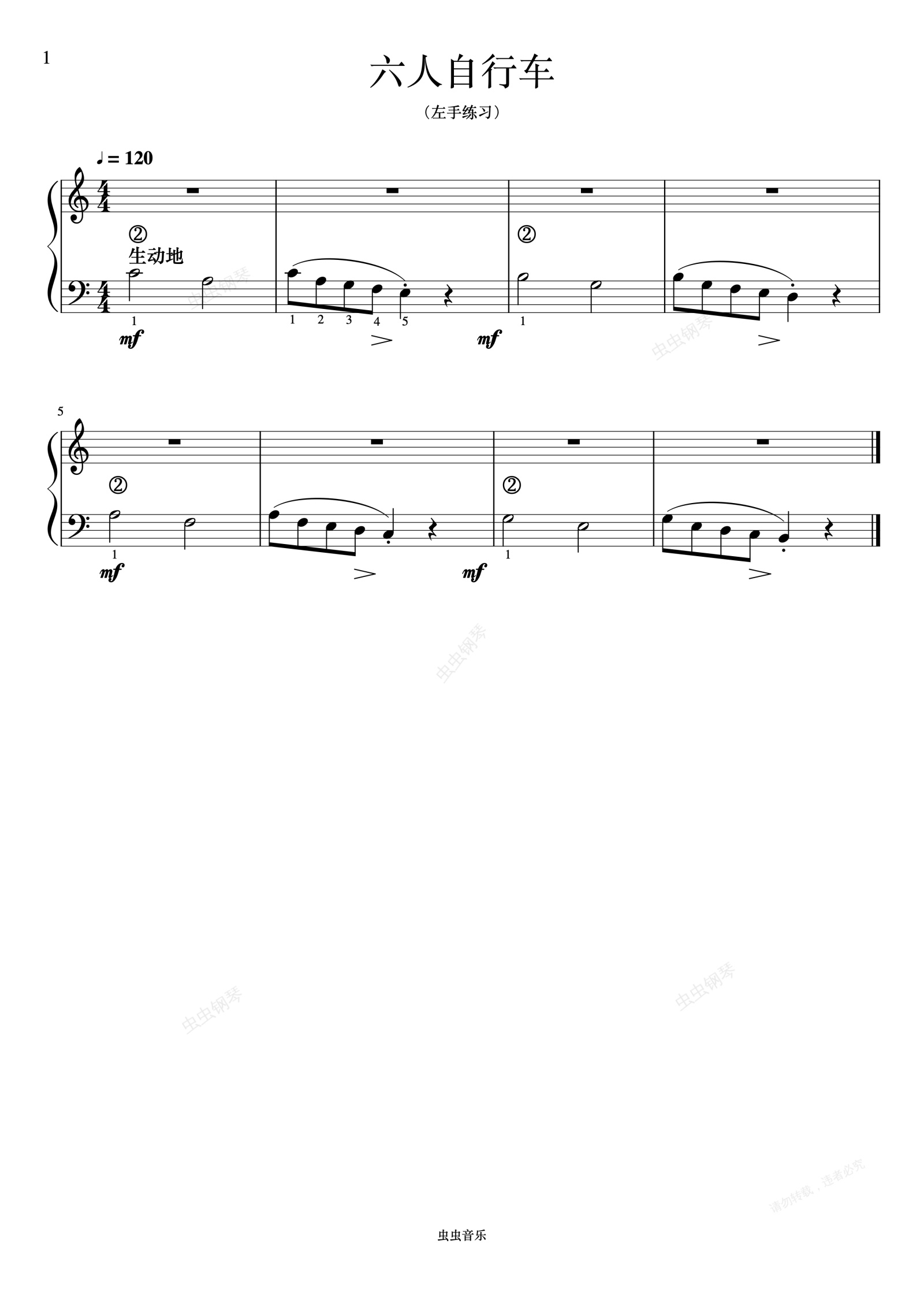 钢琴谱:单元三 六人自行车(左手练习)《FBE 技巧和演奏》