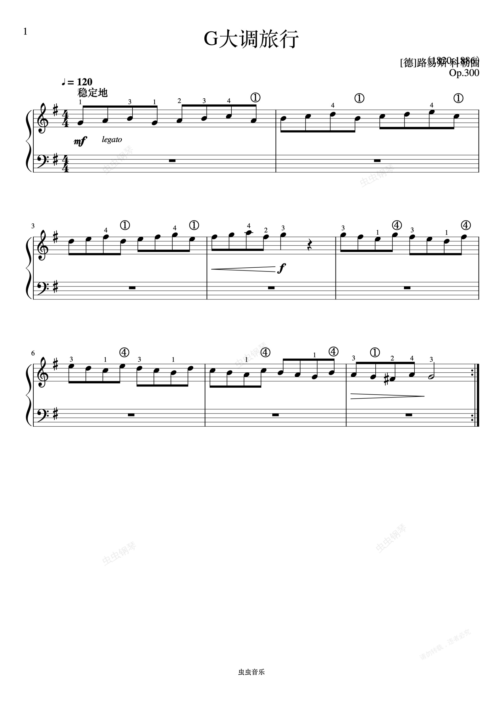 钢琴谱:单元五 G大调旅行(右手)《FBE 技巧和演奏》