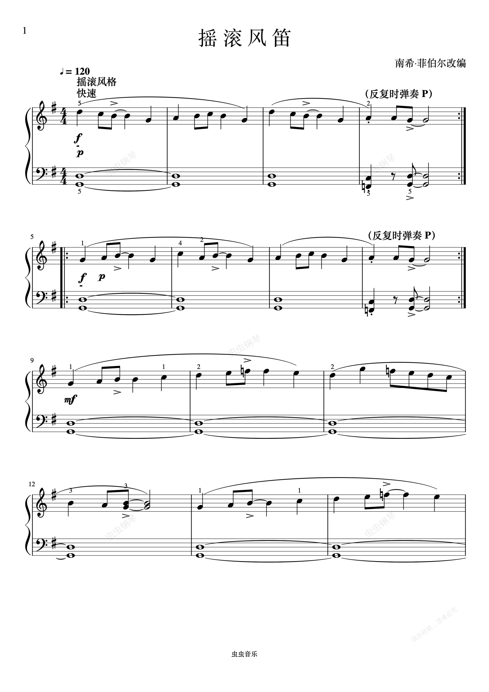 钢琴谱:单元七 摇滚风笛《FBE 技巧和演奏》