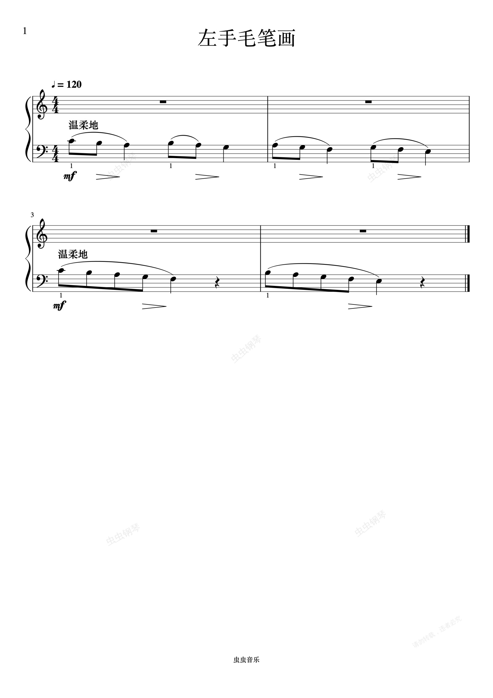 钢琴谱:单元一 左手毛笔画《FBE 技巧和演奏》