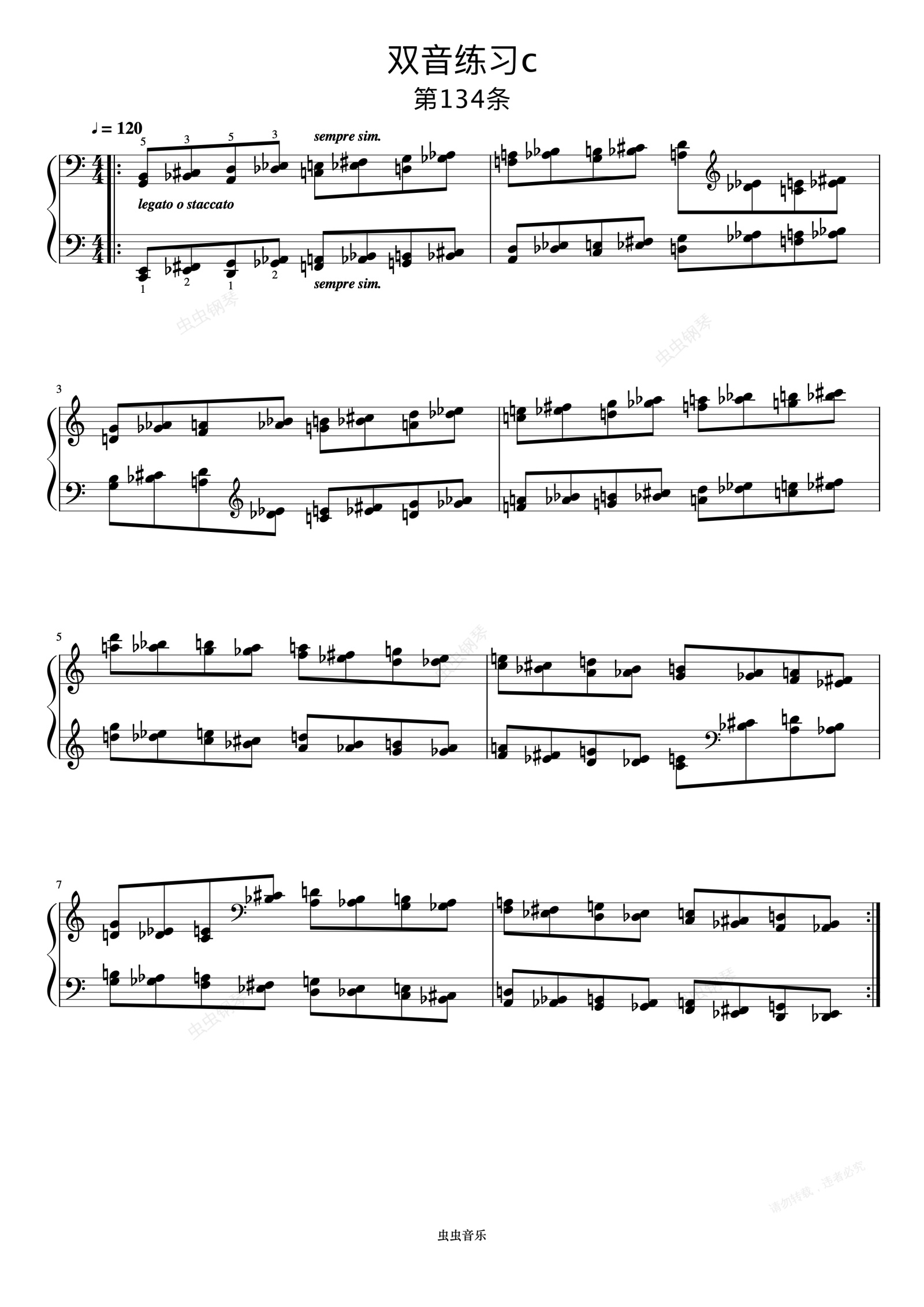 钢琴谱:双音练习c《巴托克小宇宙钢琴教程5》