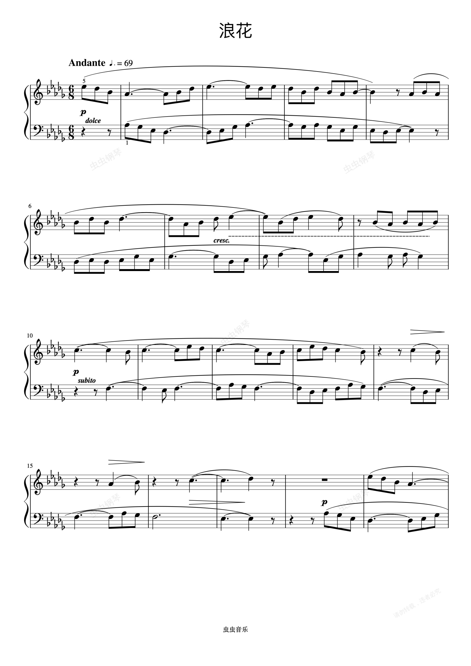 钢琴谱:浪花《巴托克小宇宙钢琴教程2》