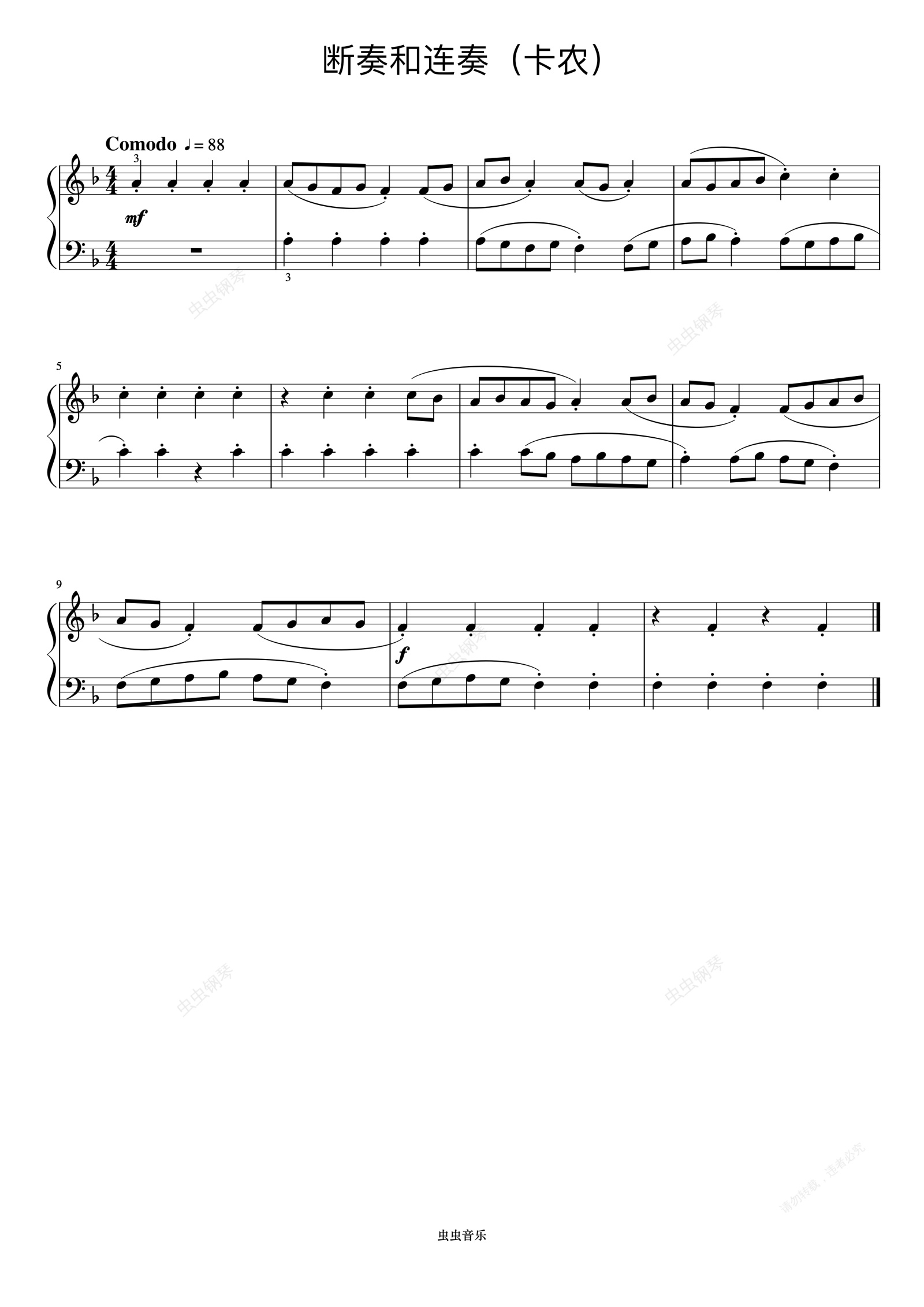 钢琴谱:断奏和连奏(卡农)《巴托克小宇宙钢琴教程2》