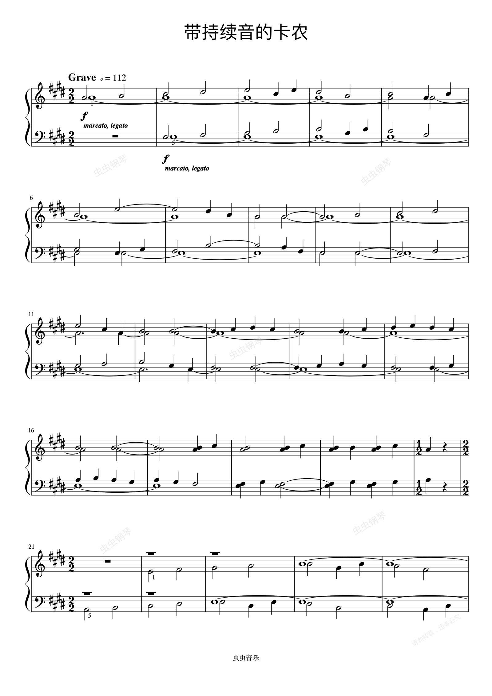 钢琴谱:带持续音的卡农《巴托克小宇宙钢琴教程2》