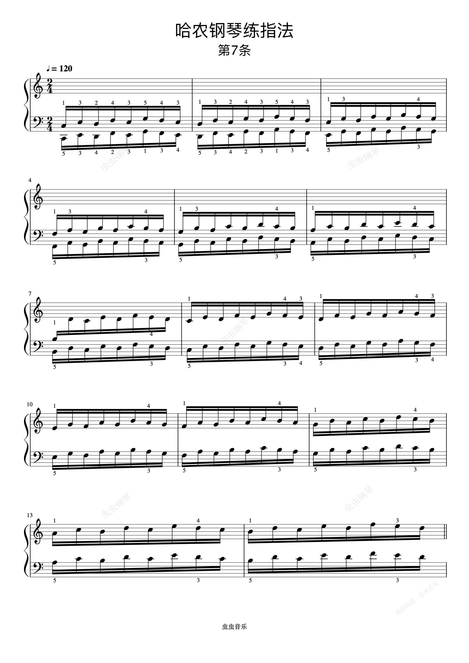 钢琴谱:练习7《哈农 钢琴练指法》