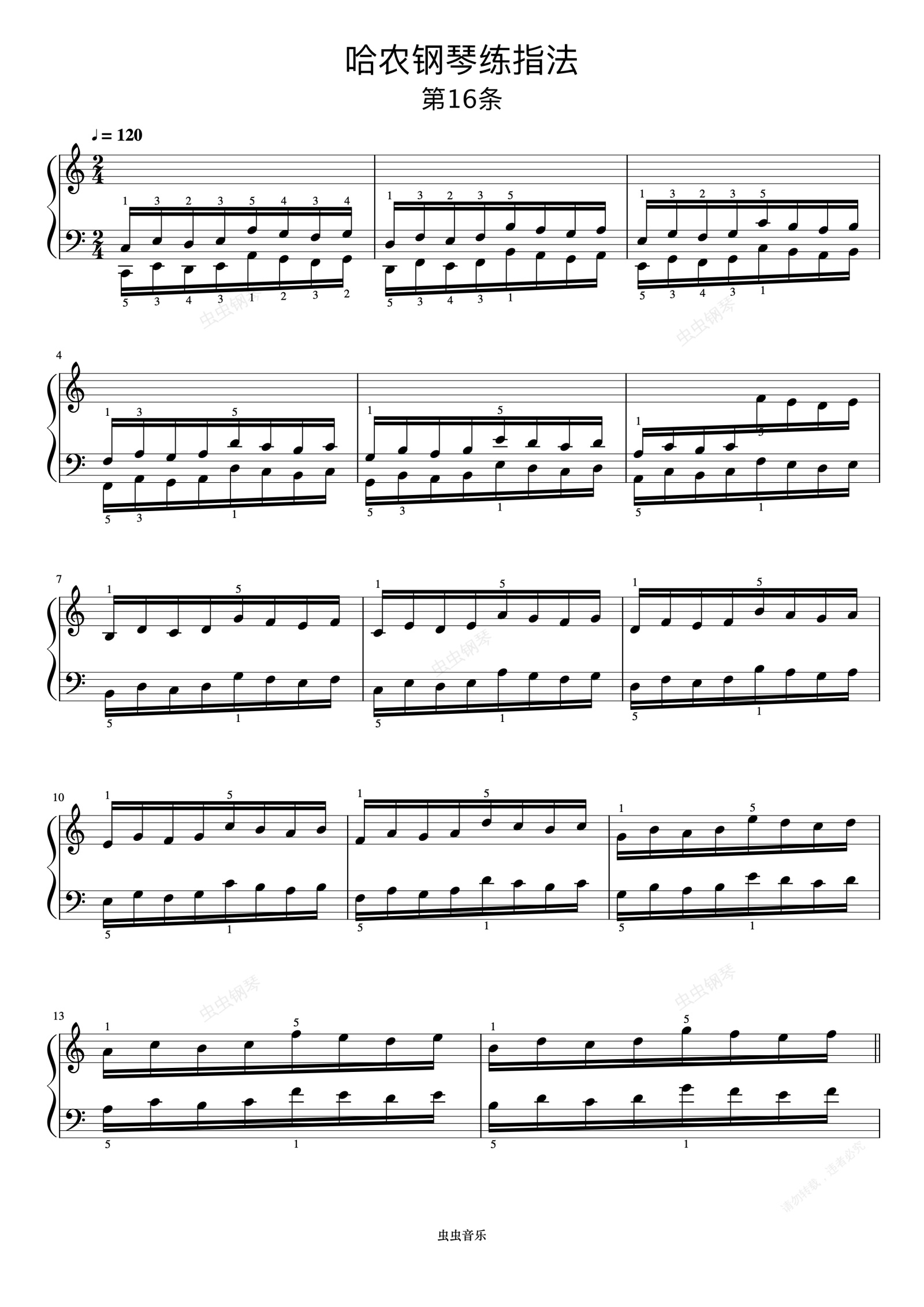 钢琴谱:练习16《哈农 钢琴练指法》