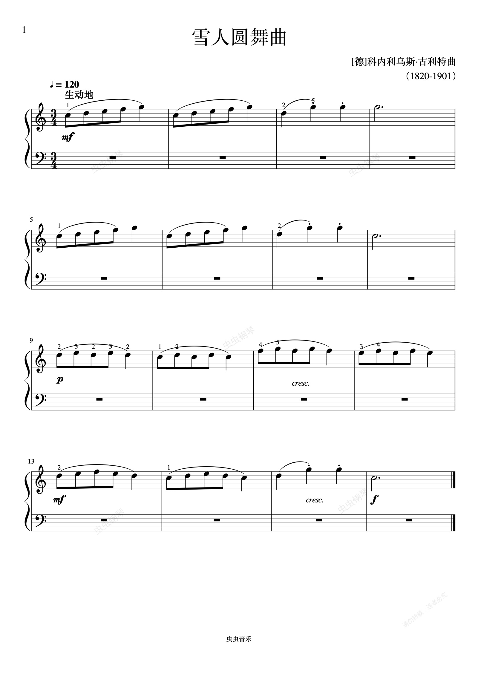 钢琴谱:单元四 雪人圆舞曲《FBE 课程和乐理》