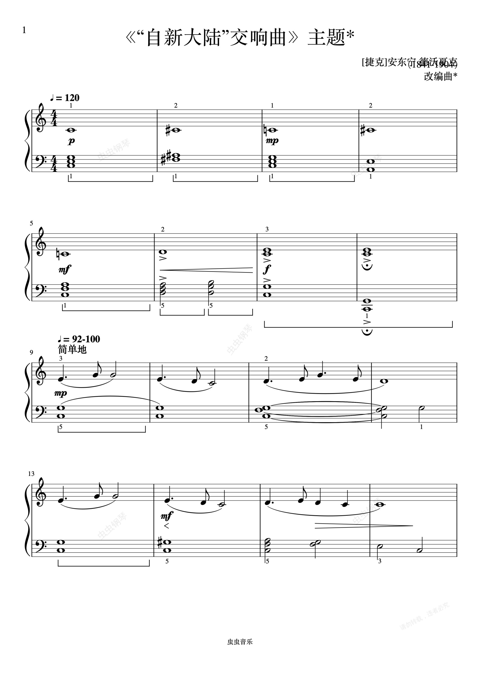 钢琴谱:单元九 《“自新大陆”交响曲主题《FBE 课程和乐理》
