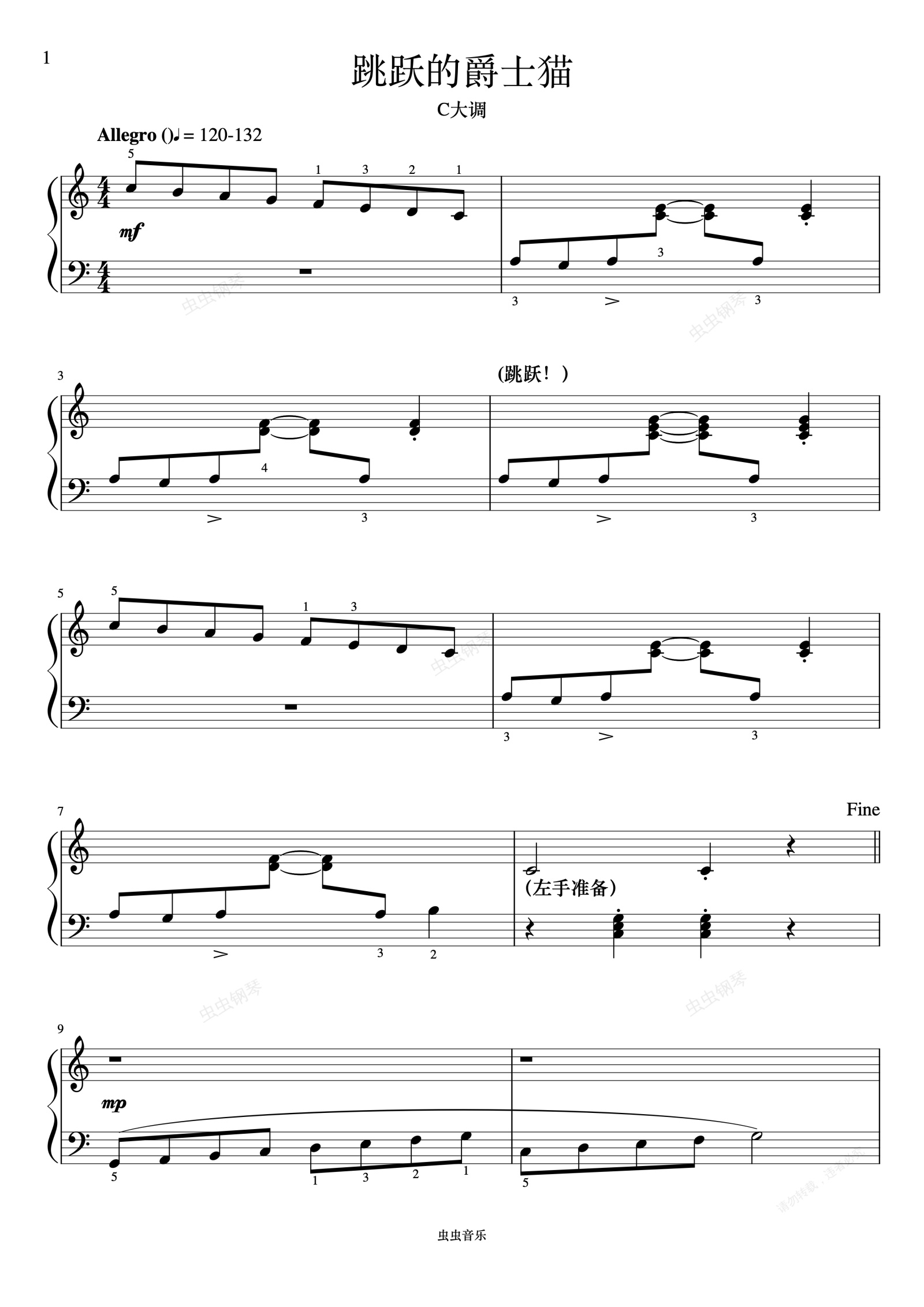 钢琴谱:单元四 跳跃的爵士猫《FBE 课程和乐理》
