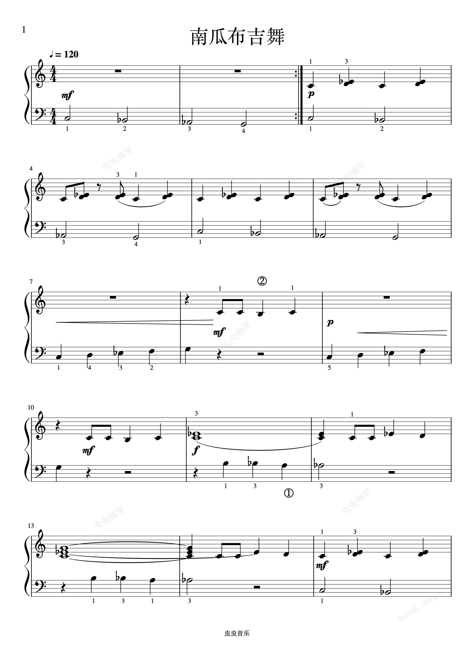 钢琴谱:单元七 南瓜布吉舞《FBE 课程和乐理》