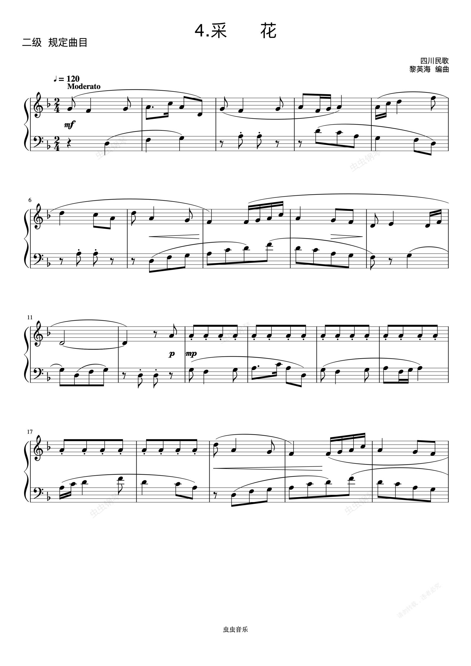 钢琴谱:2级 采花《中国院钢琴考级曲目》
