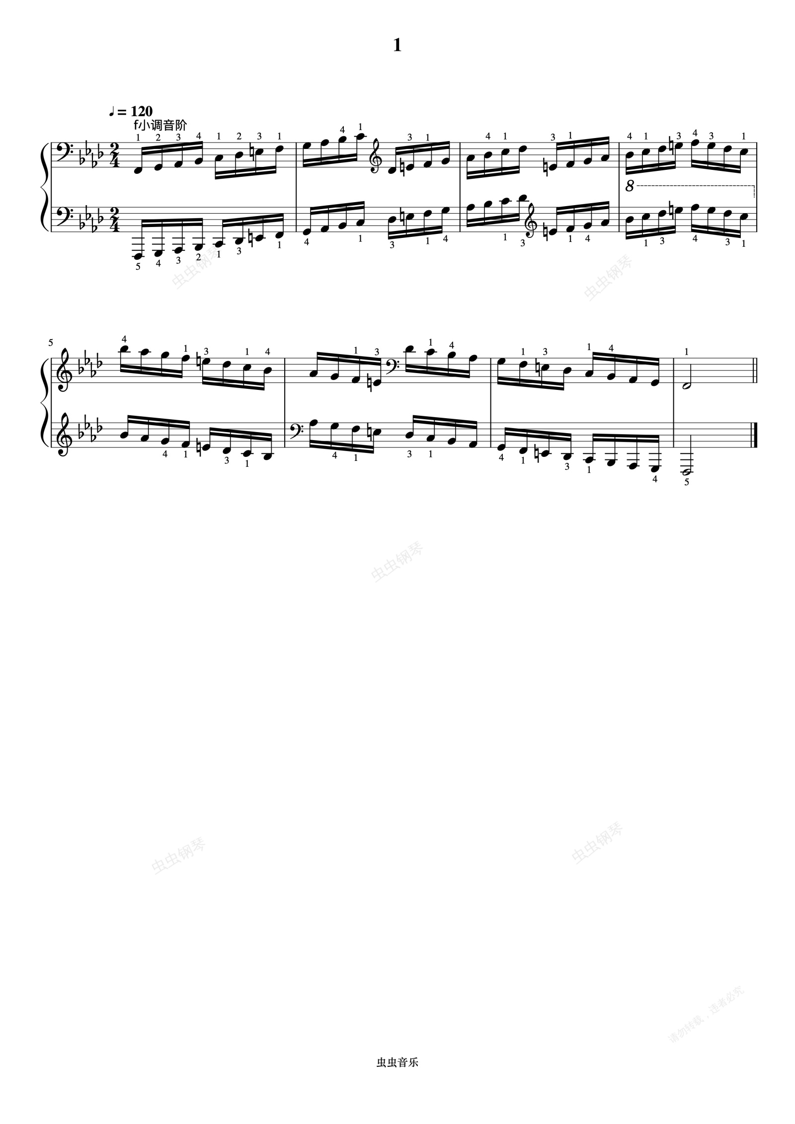 钢琴谱:5级 f小调音阶《中国院钢琴考级曲目》