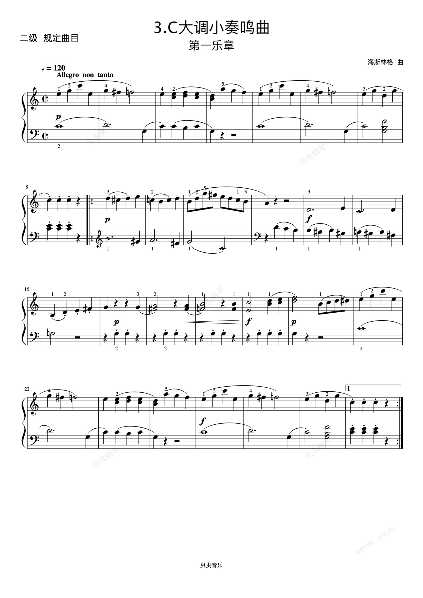 钢琴谱:2级 C大调小奏鸣曲 第一乐章《中国院钢琴考级曲目》