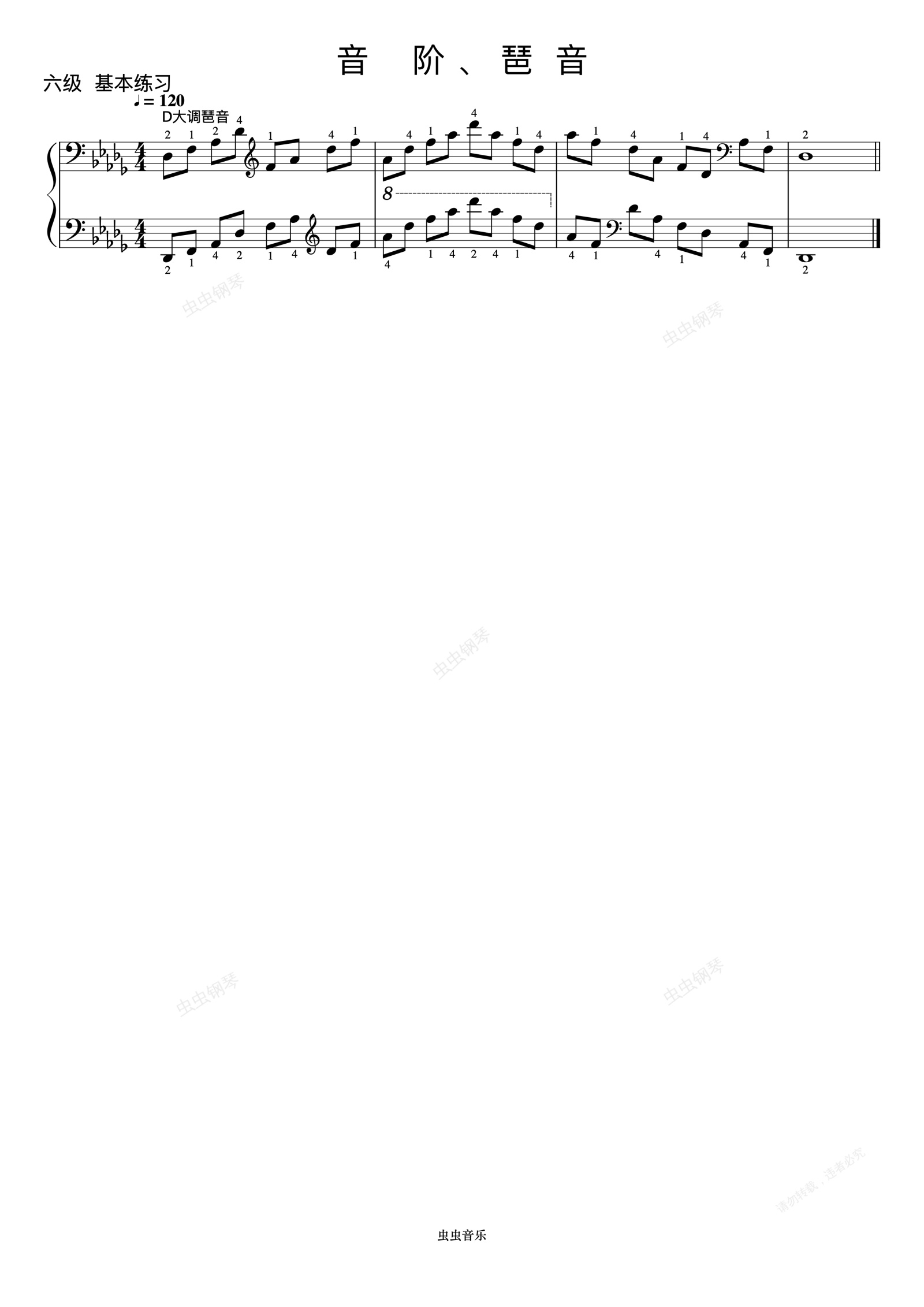 钢琴谱:6级 降D大调琶音《中国院钢琴考级曲目》