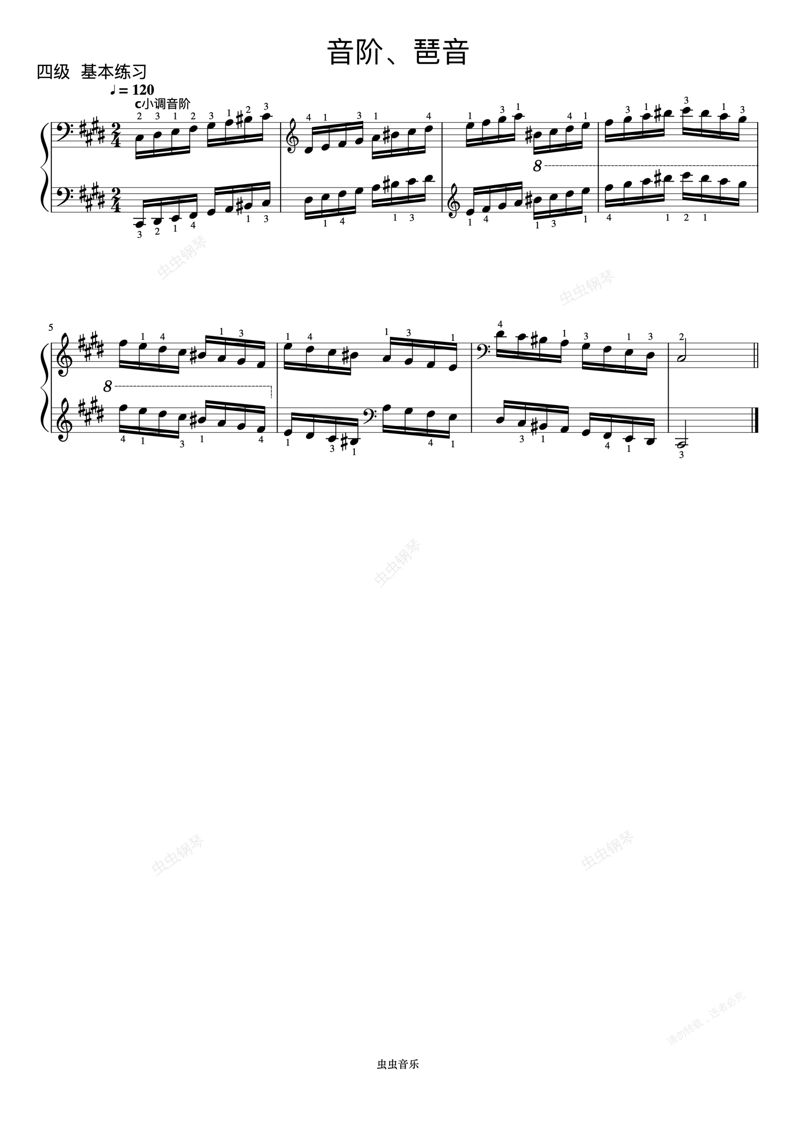 钢琴谱:4级 升c小调音阶《中国院钢琴考级曲目》