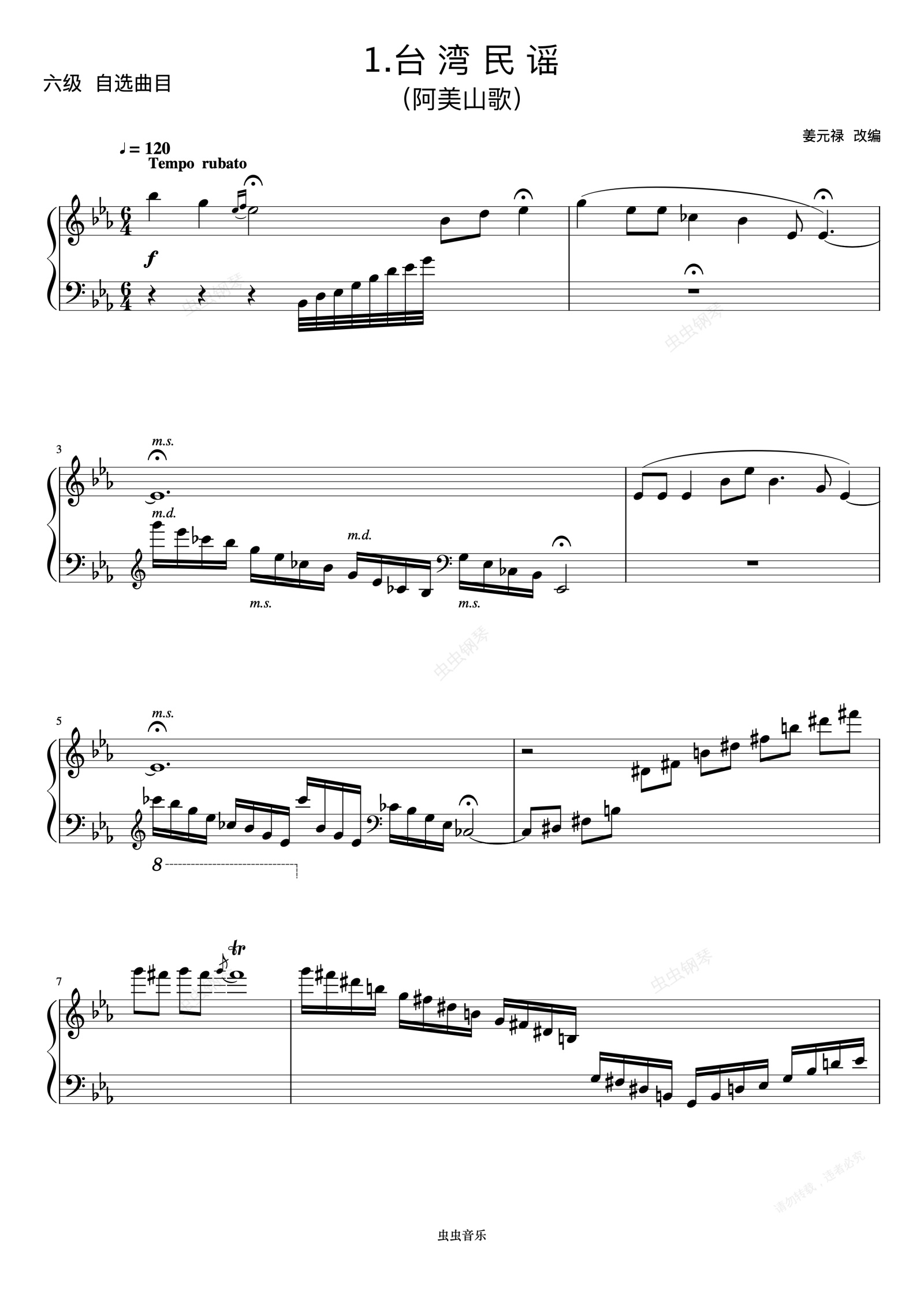 钢琴谱:6级 台湾民谣《中国院钢琴考级曲目》
