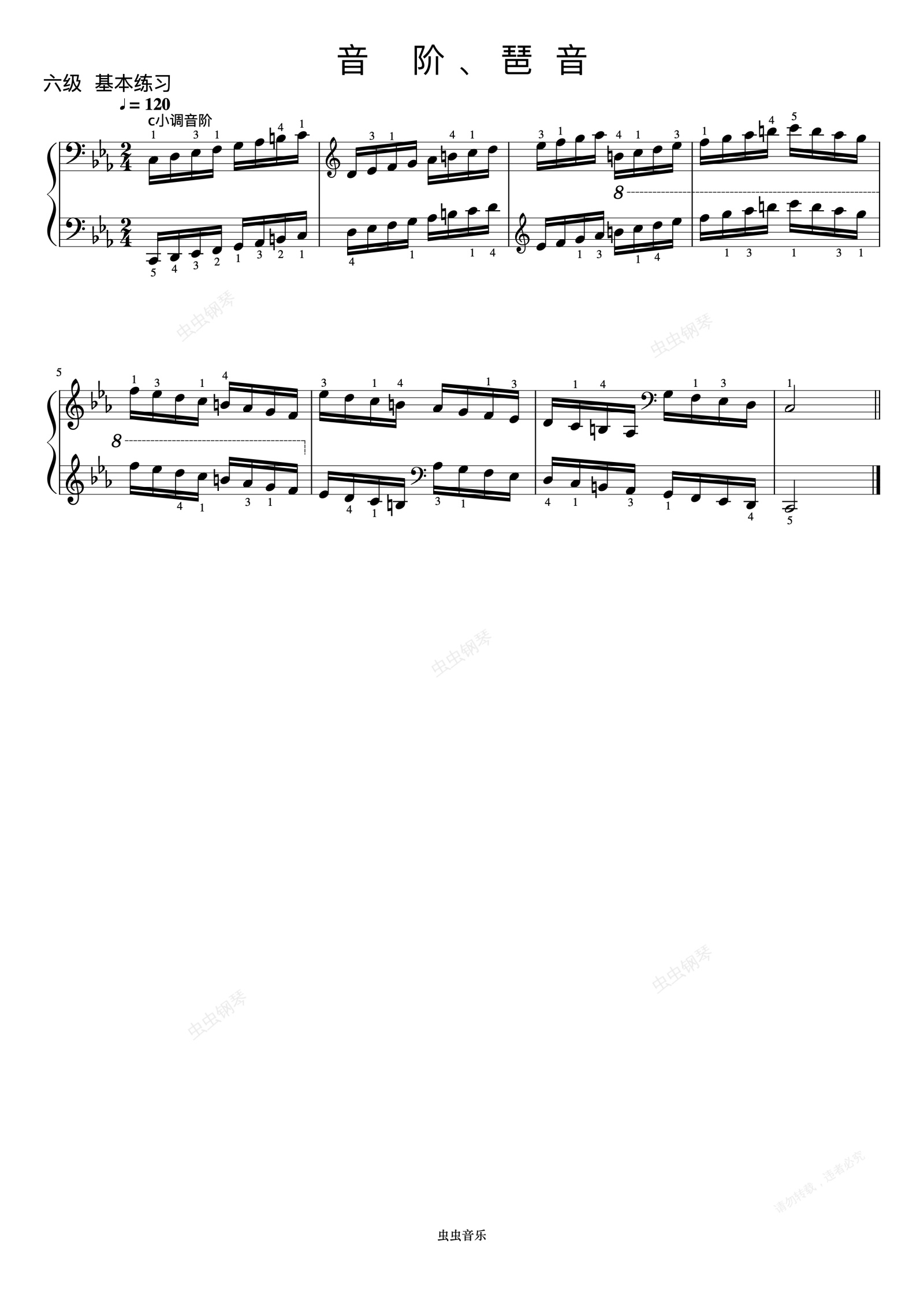 钢琴谱:6级 c小调音阶《中国院钢琴考级曲目》