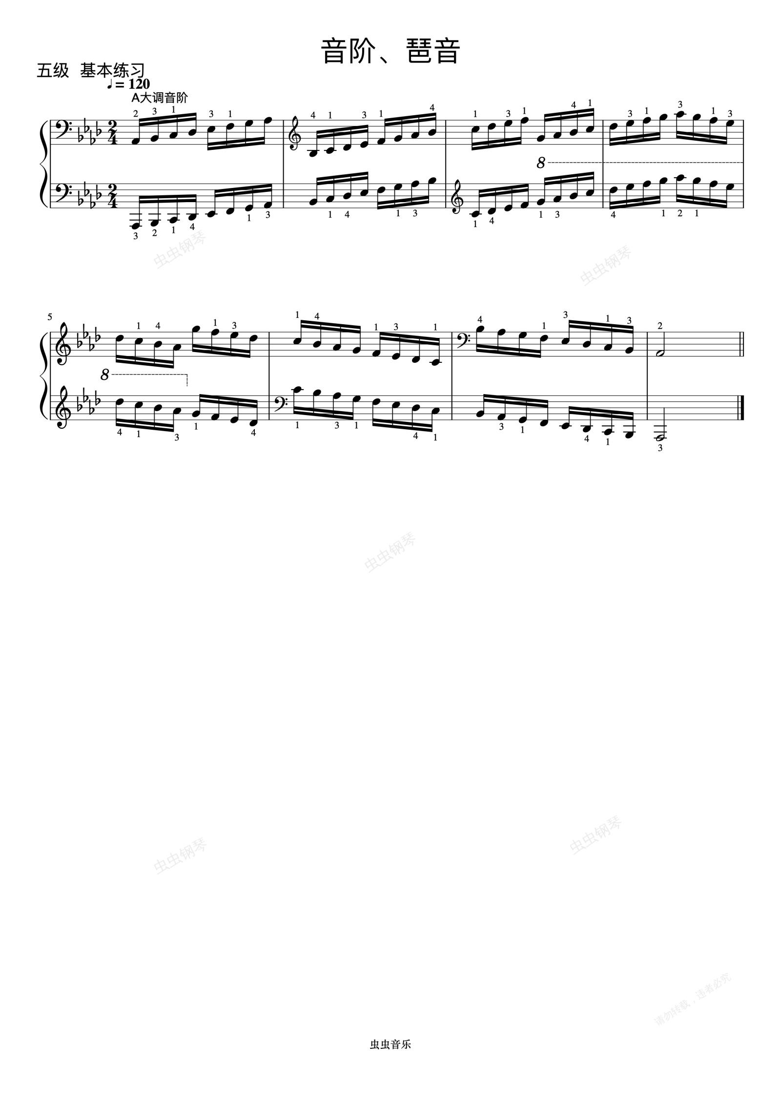 钢琴谱:5级 降A大调音阶《中国院钢琴考级曲目》