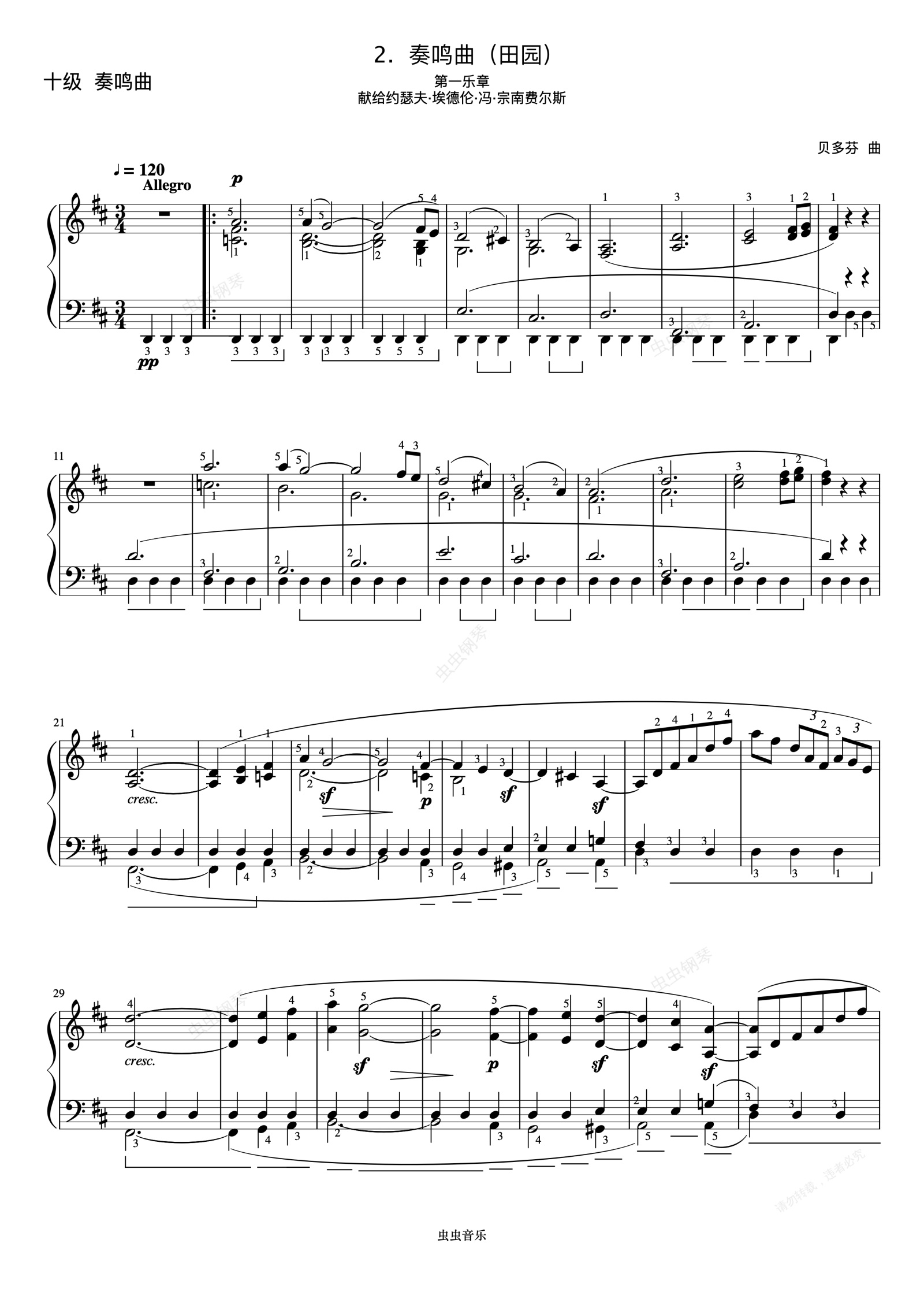 钢琴谱:10级 奏鸣曲(田园第一乐章)《中国院钢琴考级曲目》
