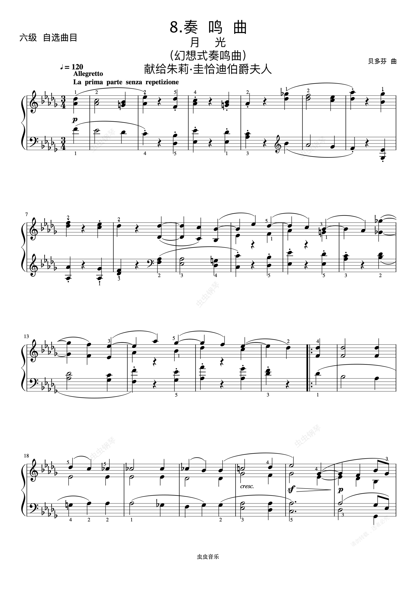 钢琴谱:6级 月光奏鸣曲第二乐章《中国院钢琴考级曲目》