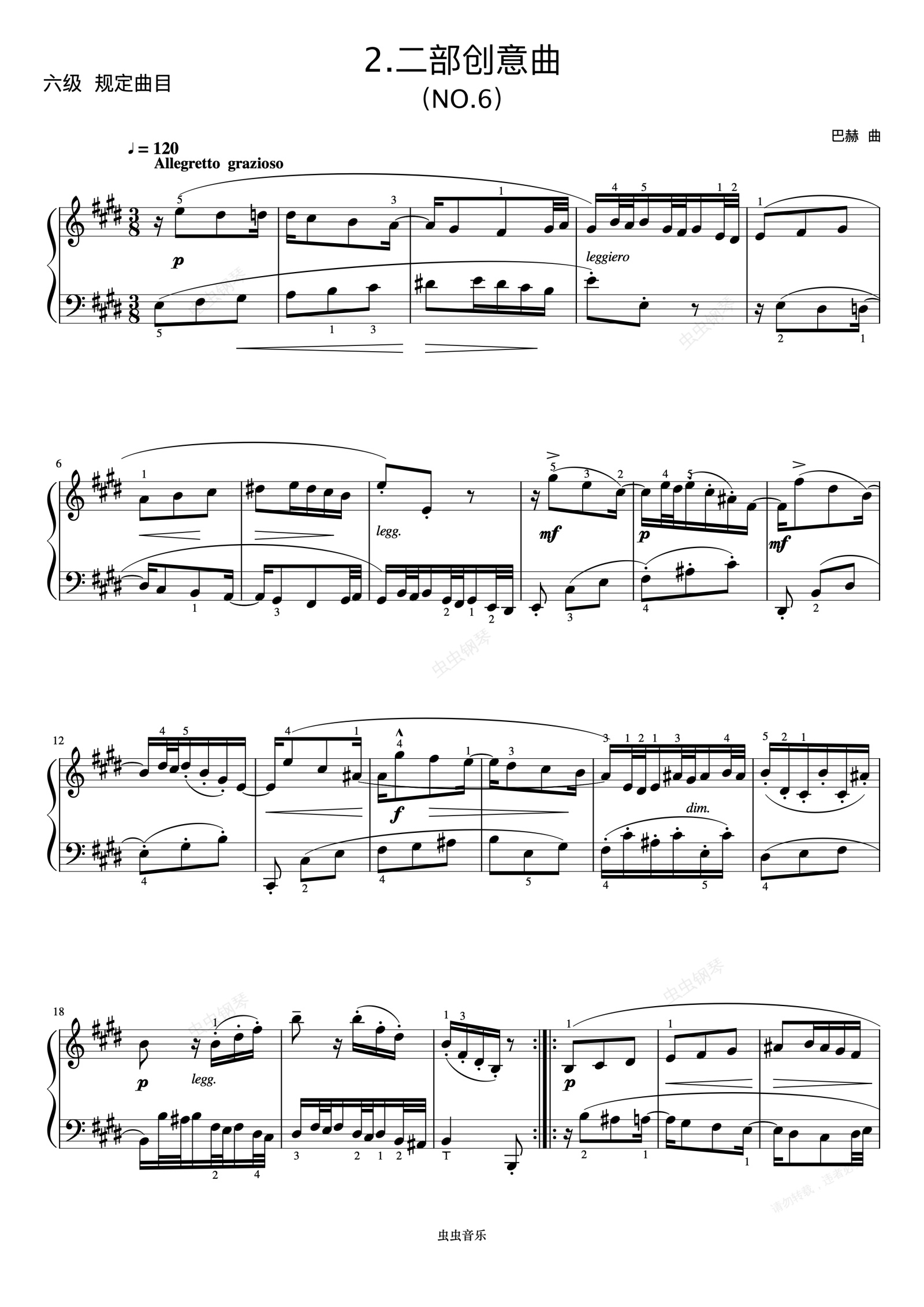 钢琴谱:6级 二部创意曲(No.6)《中国院钢琴考级曲目》