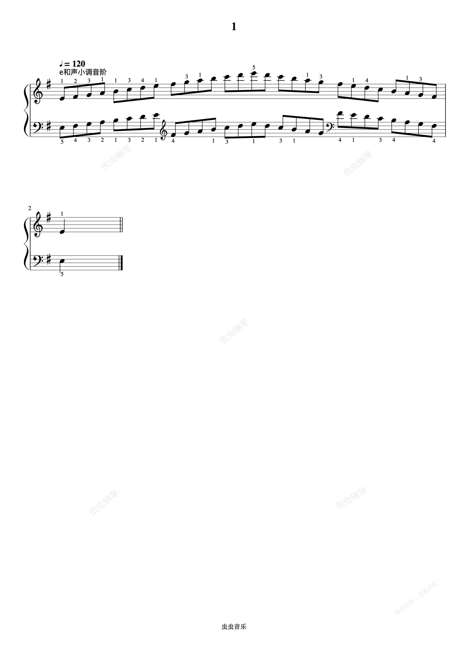 钢琴谱:1级 e和声小调音阶《中国院钢琴考级曲目》
