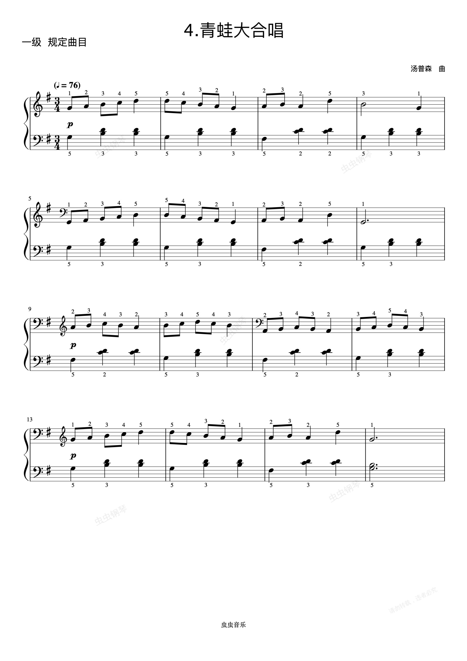钢琴谱:1级 青蛙大合唱《中国院钢琴考级曲目》