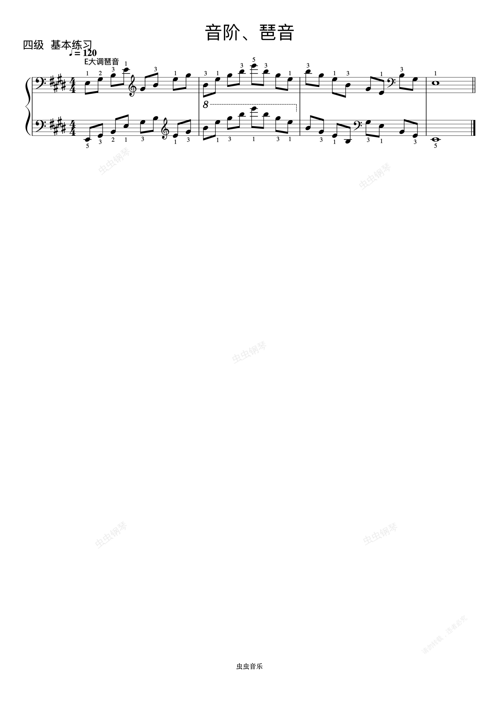 钢琴谱:4级 E大调琶音《中国院钢琴考级曲目》