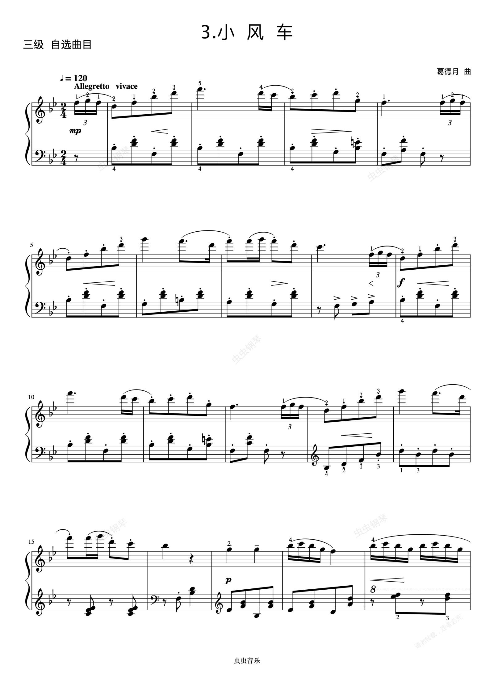 钢琴谱:3级 小风车《中国院钢琴考级曲目》