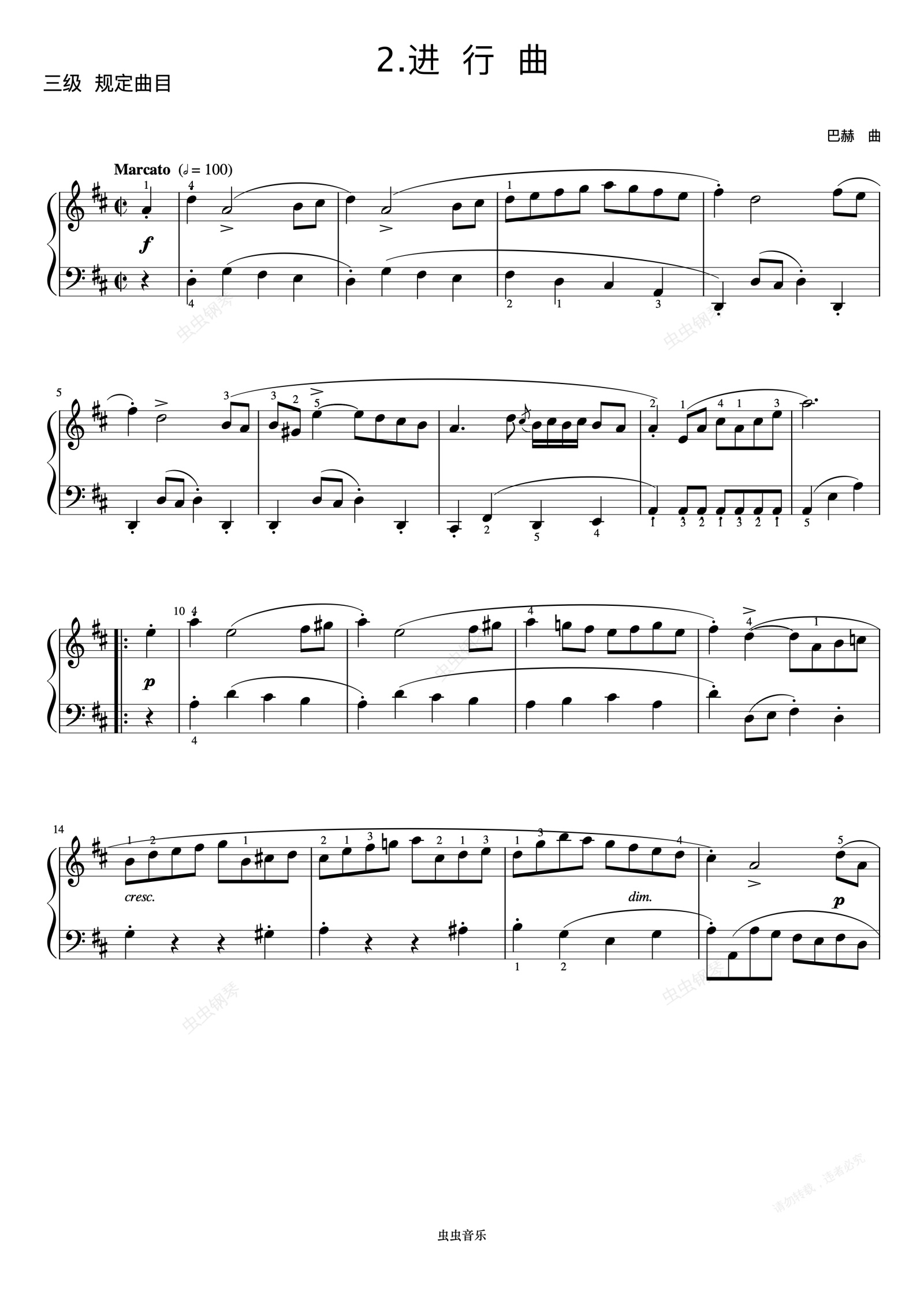 钢琴谱:3级 进行曲《中国院钢琴考级曲目》