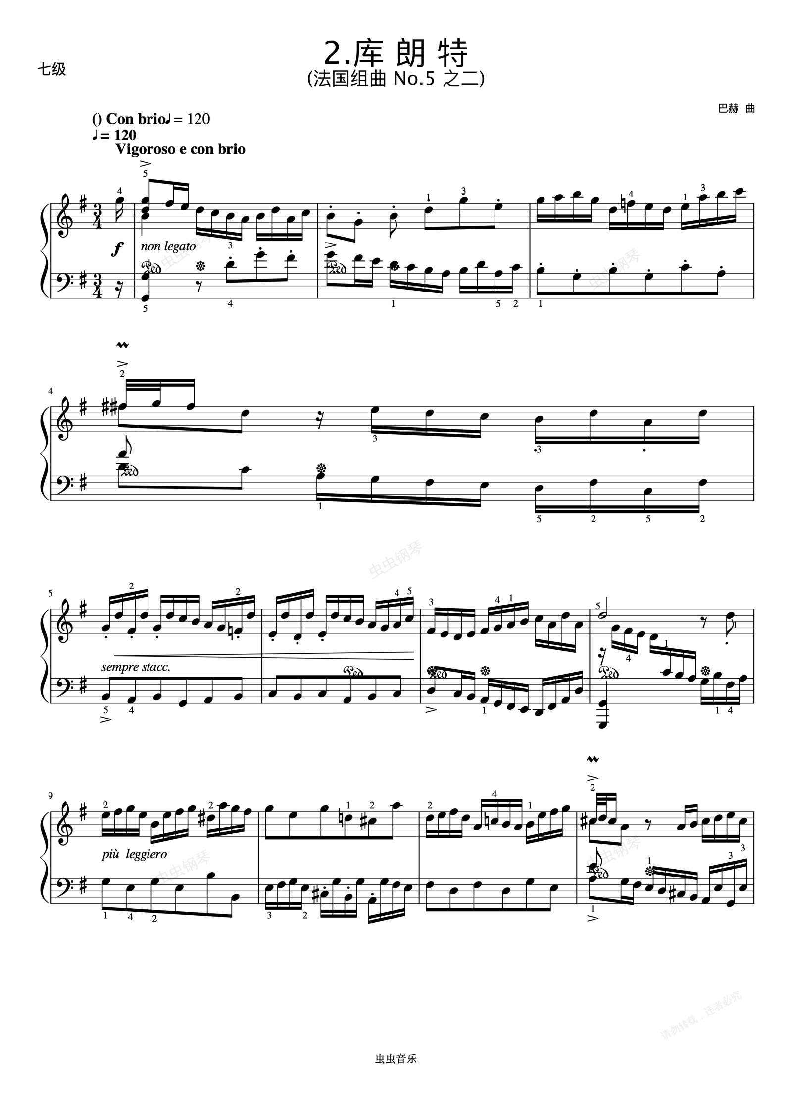 钢琴谱:7级 库朗特(法国组曲No.5之二)《中国院钢琴考级曲目》