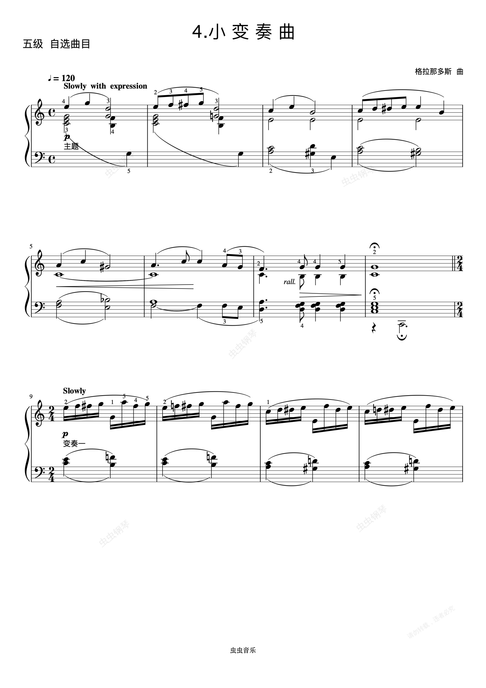 钢琴谱:5级 小变奏曲《中国院钢琴考级曲目》