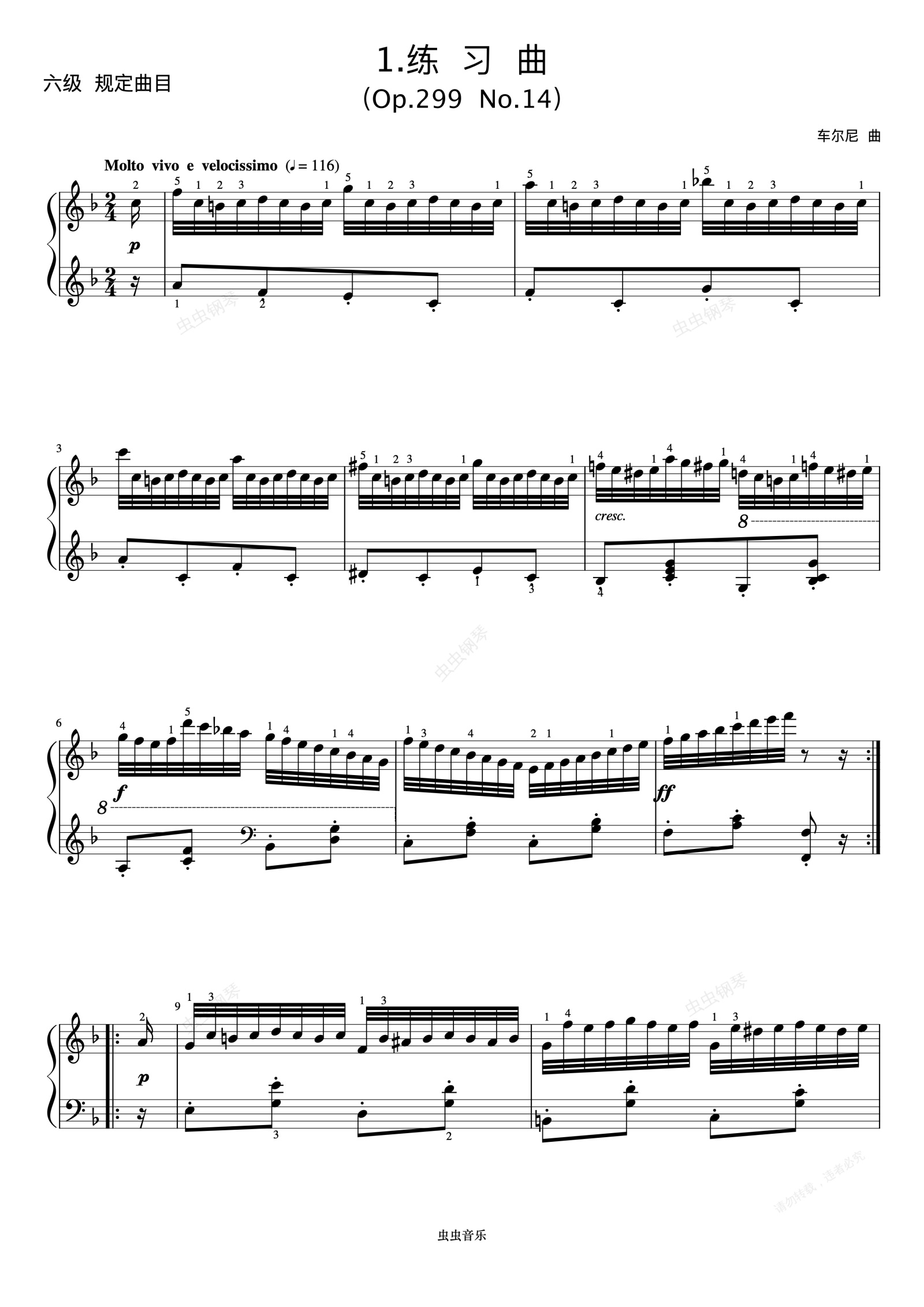 钢琴谱:6级 练习曲(Op.299 No.14)《中国院钢琴考级曲目》