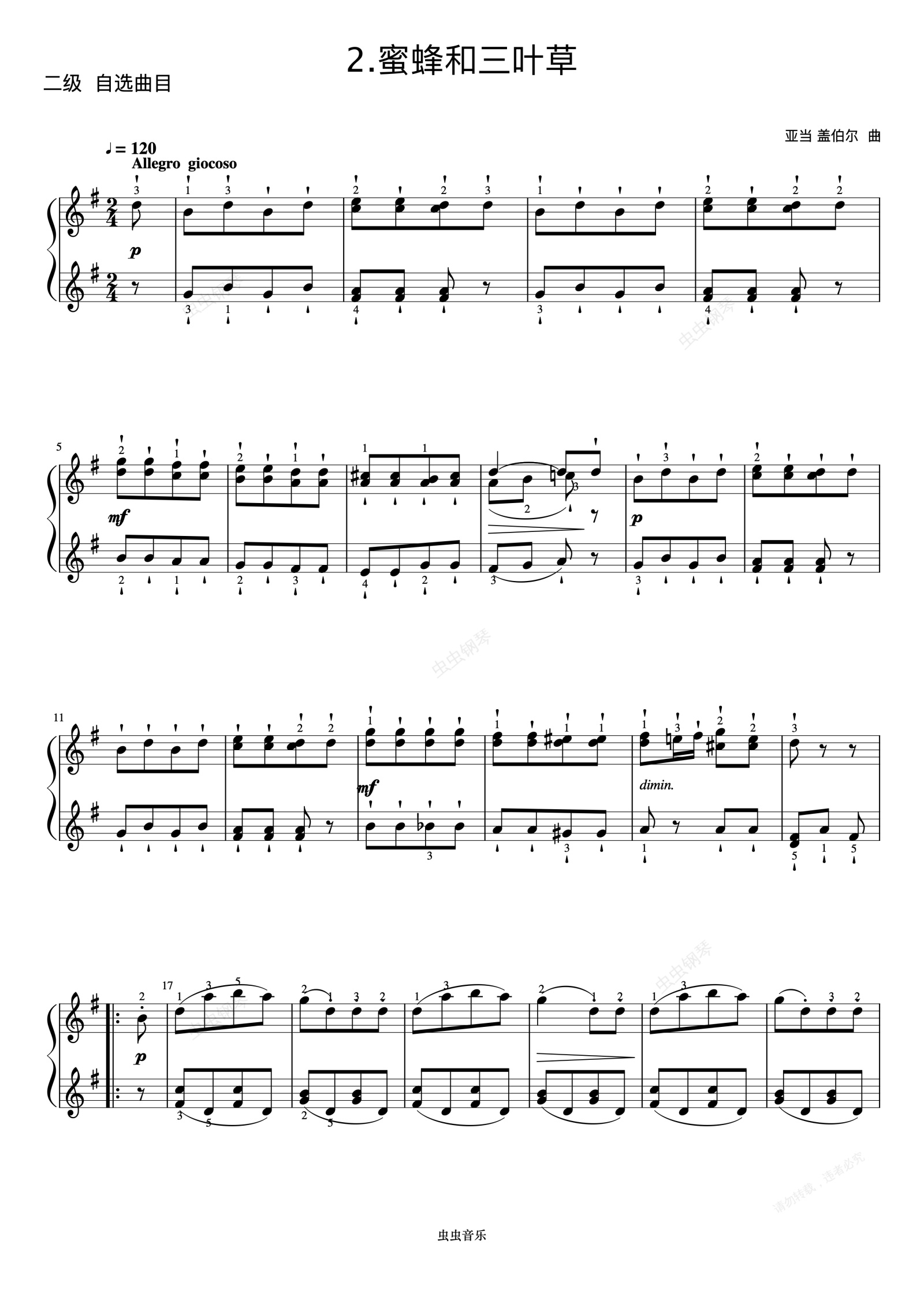 钢琴谱:2级 蜜蜂和三叶草《中国院钢琴考级曲目》