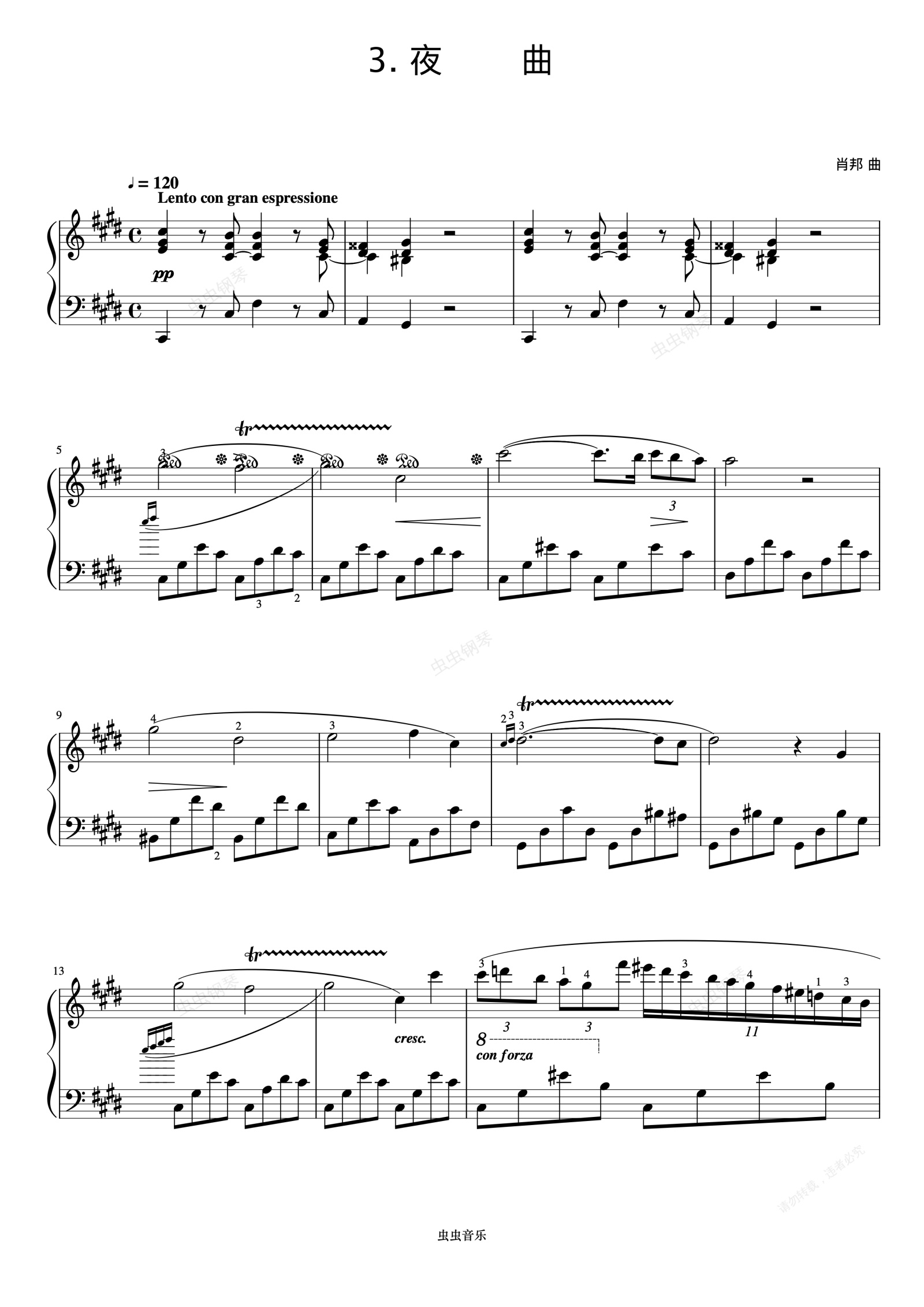 钢琴谱:8级 夜曲《中国院钢琴考级曲目》