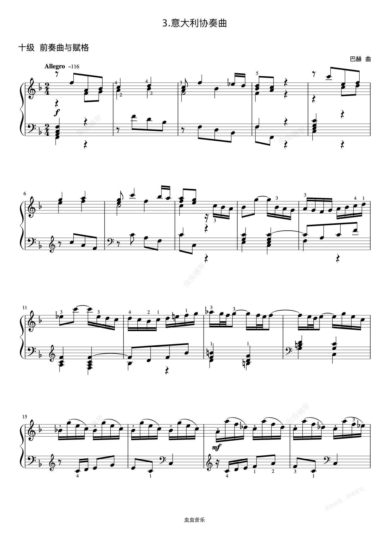 钢琴谱:10级 意大利协奏曲《中国院钢琴考级曲目》