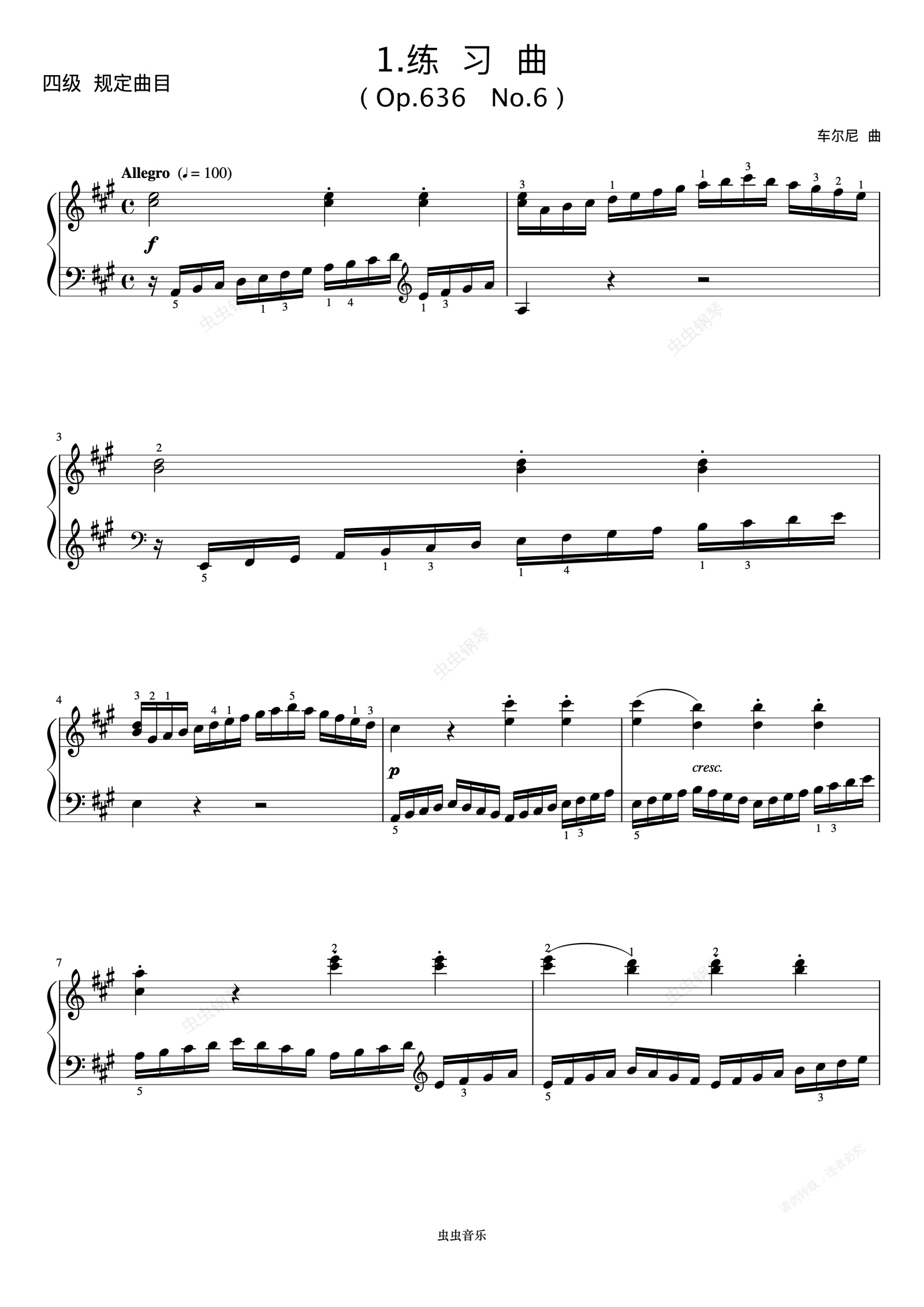 钢琴谱:4级 练习曲(Op.636 No.6)《中国院钢琴考级曲目》