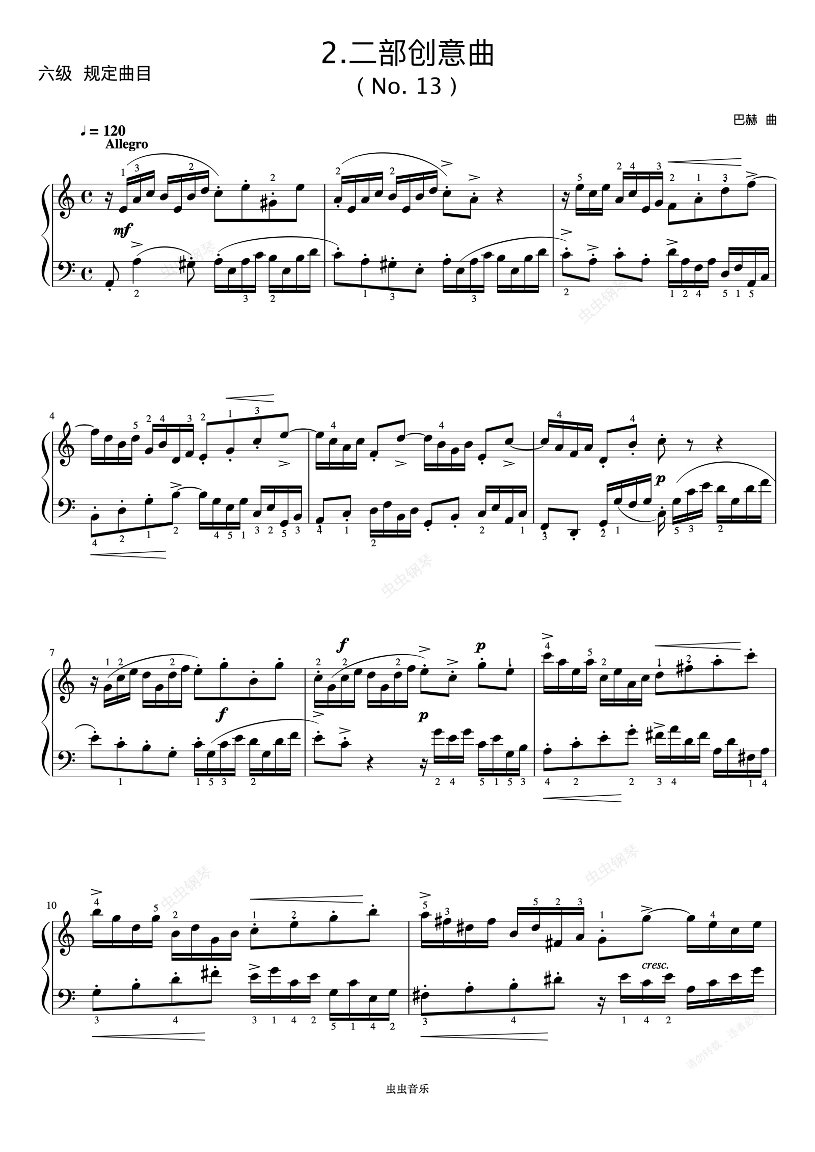 钢琴谱:6级 二部创意曲(No.13)《中国院钢琴考级曲目》