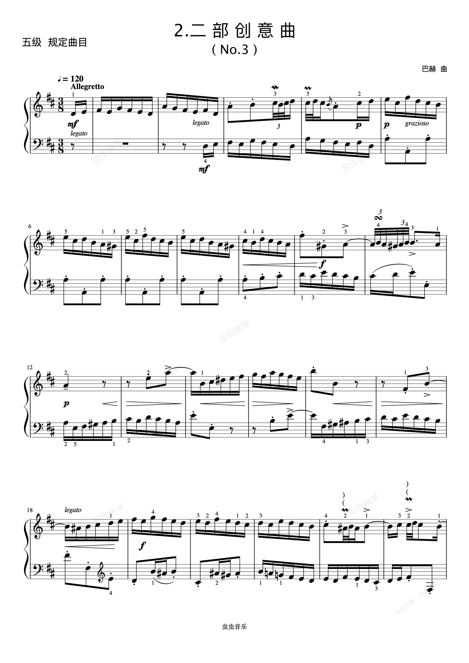 钢琴谱:5级 二部创意曲(No.3)《中国院钢琴考级曲目》