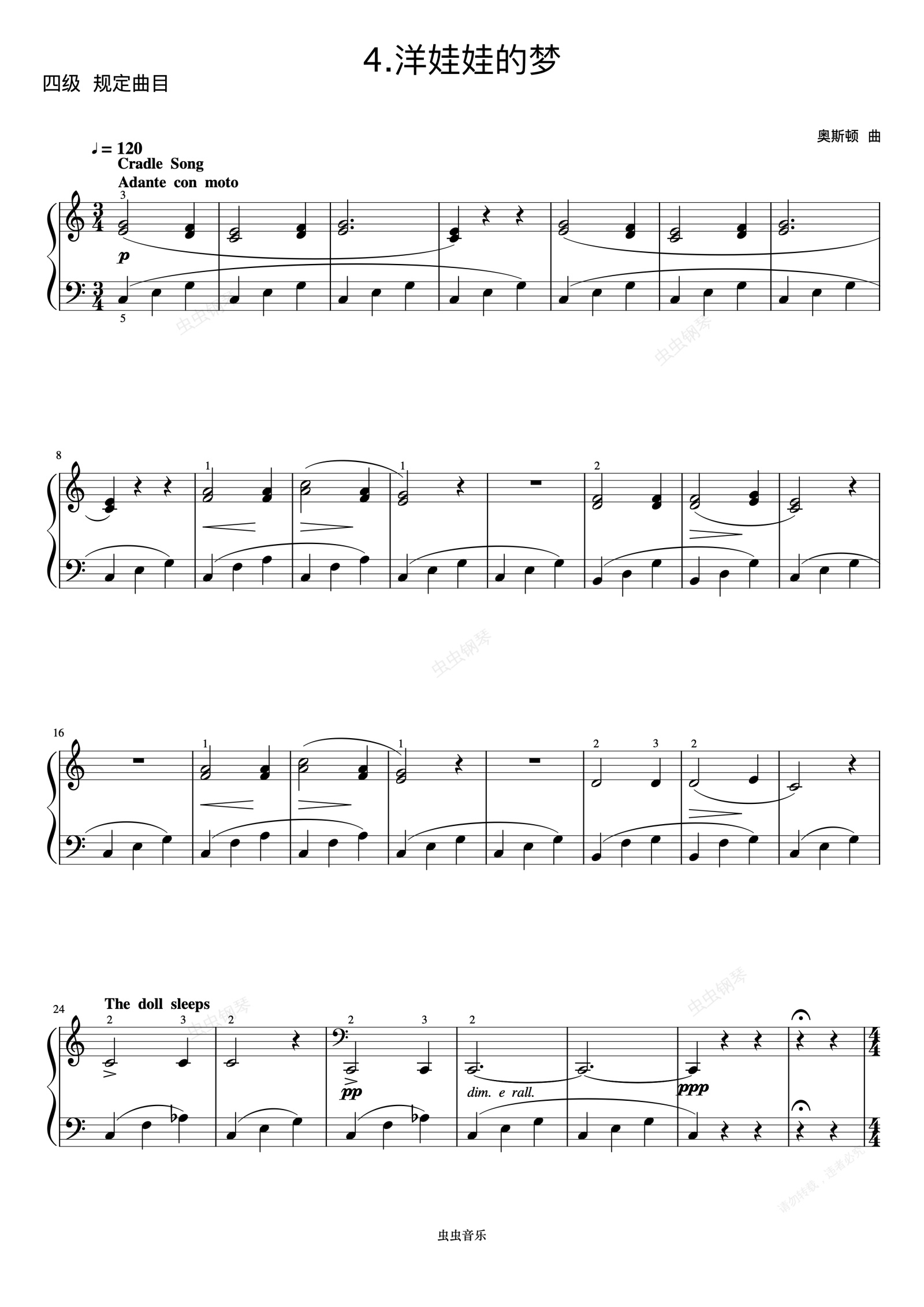 钢琴谱:4级 洋娃娃的梦《中国院钢琴考级曲目》