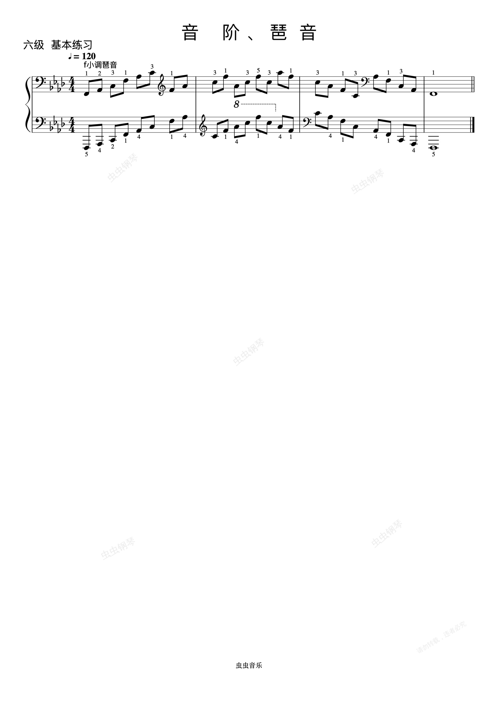 钢琴谱:6级 f小调琶音《中国院钢琴考级曲目》